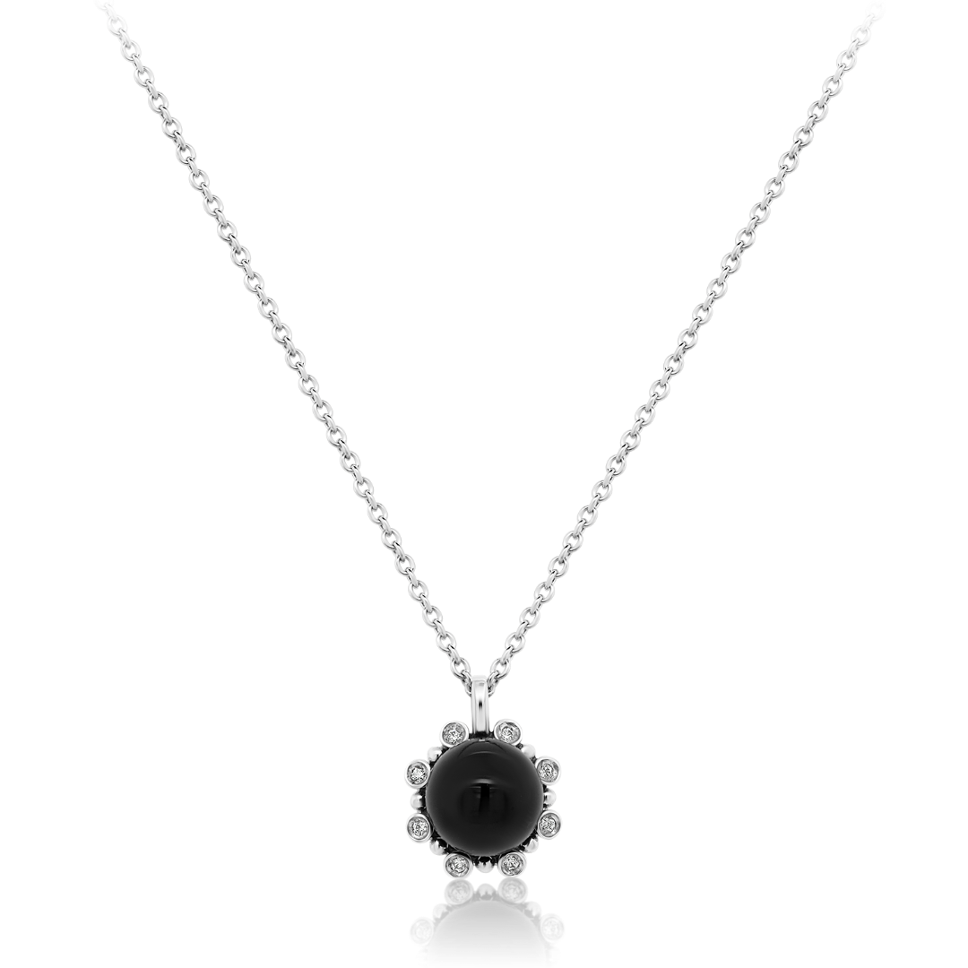 Lant din aur alb de 14K și pandantiv cu piatră Onix