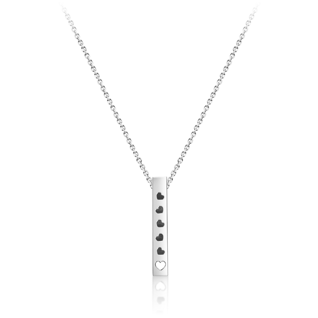 Lanț din aur alb de 14K și pandantiv cu decupaje în formă de inimă.