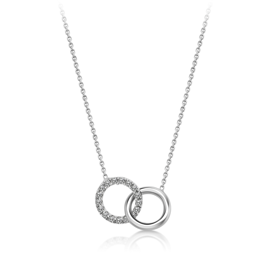 Lanț din aur alb de 14K, cu pandantive rotunde și pietre Cubic Zirconia albe.