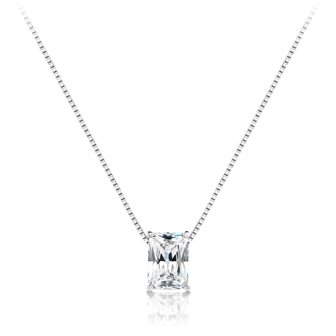 Lanț din aur alb de 14K și pandantiv cu piatră Cubic Zirconia albă.