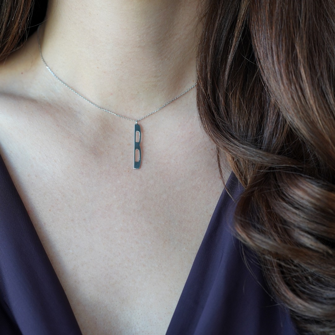 Lanț din aur alb de 14K cu pandantiv litera B.