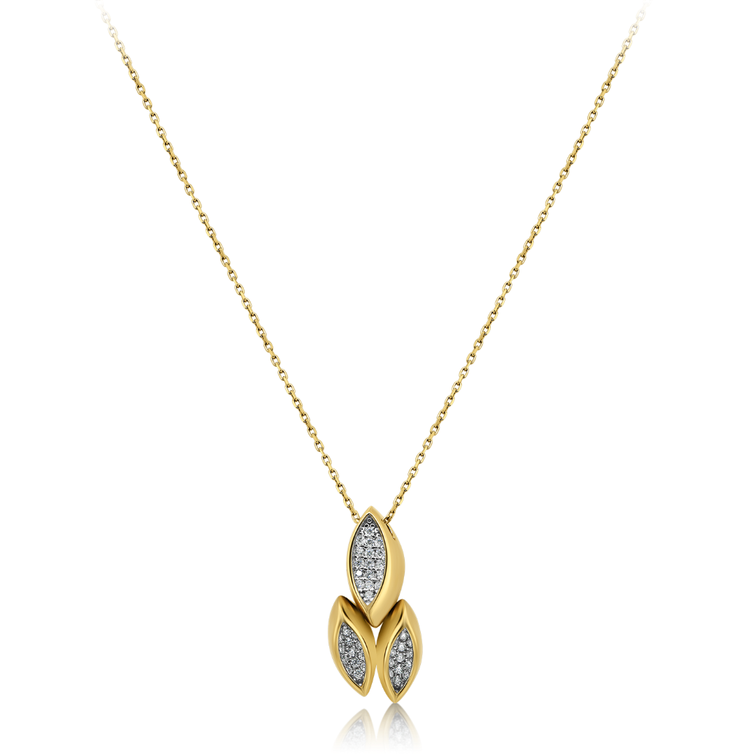 Lanț din aur galben de 14K și pandantiv cu pietre Cubic Zirconia albe.