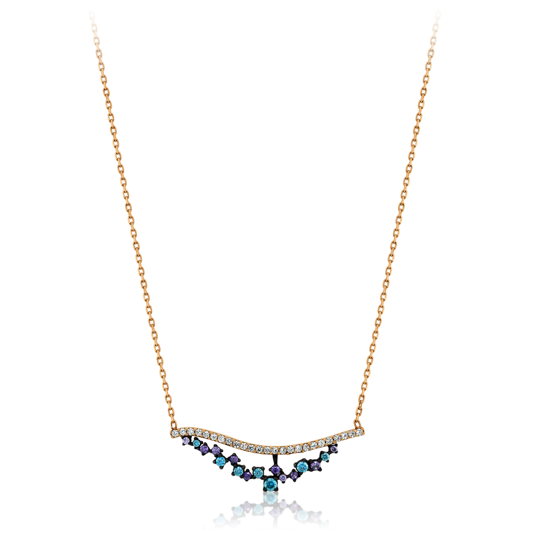 Colier din aur roz de 14K cu pietre Cubic Zirconia colorate.