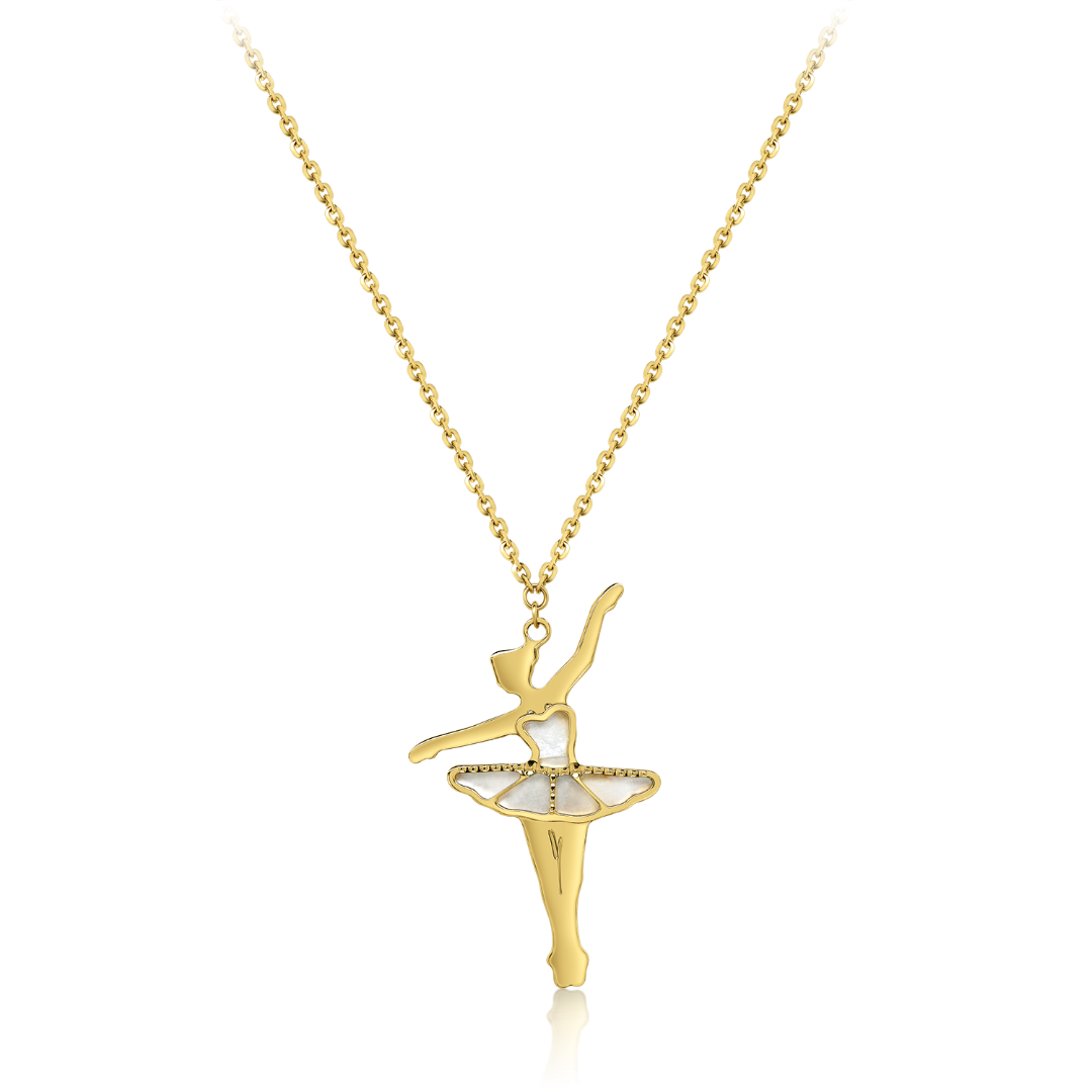 Lanț din aur galben de 14K și pandantiv balerină cu Sidef.