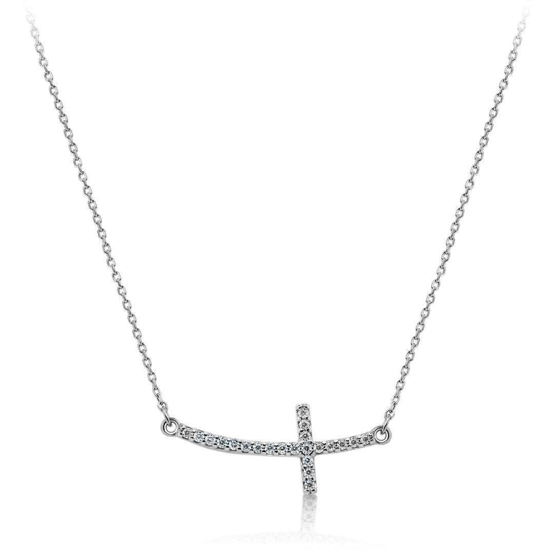 Lanț din aur alb de 14K și pandantiv cruce cu pietre Cubic Zirconia albe.