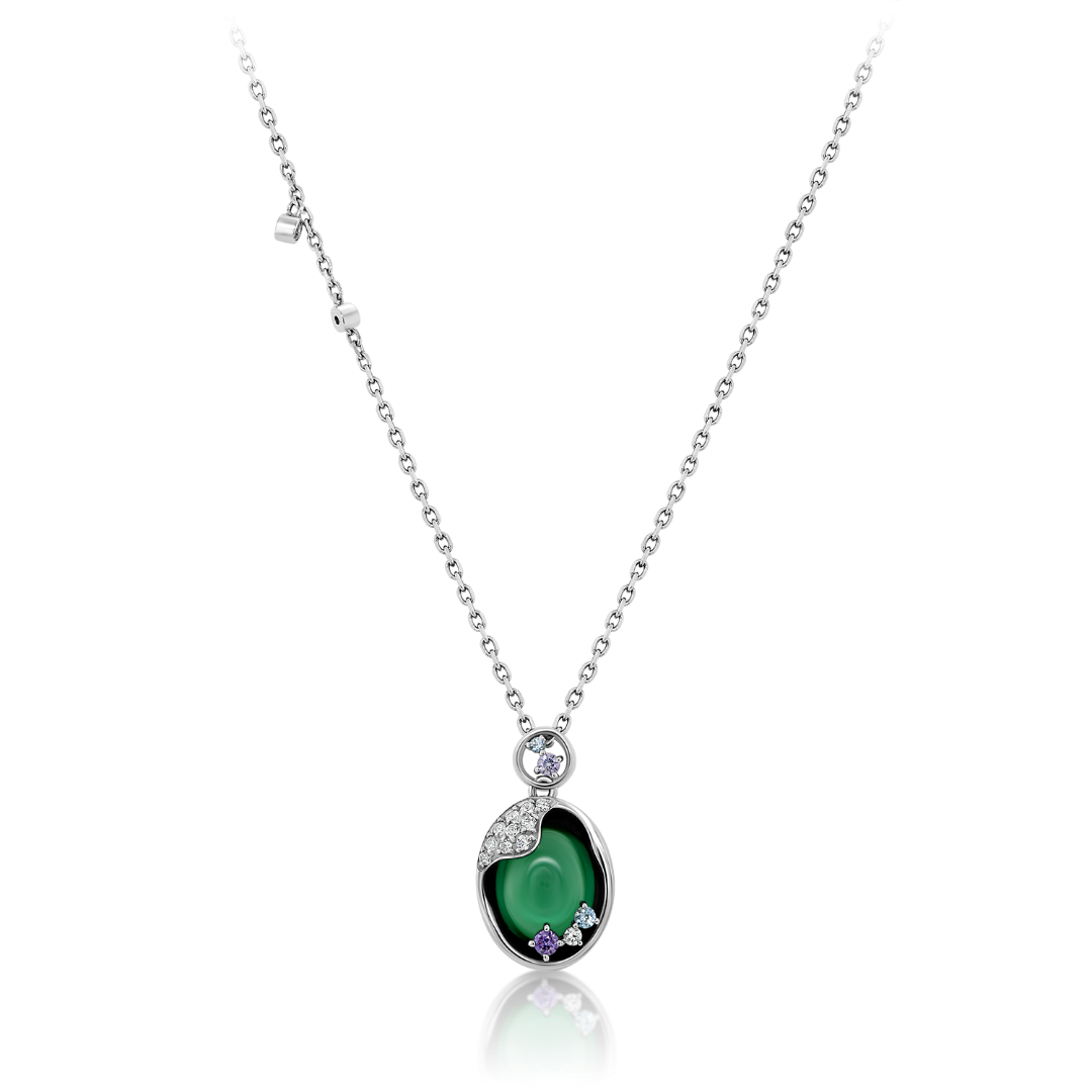 Lanț din aur alb de 14K și pandantiv cu pietre Cubic Zirconia.