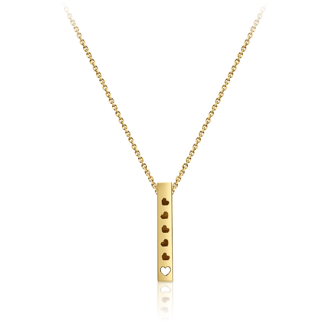 Lanț din aur galben de 14K și pandantiv cu decupaje în formă de inimă.