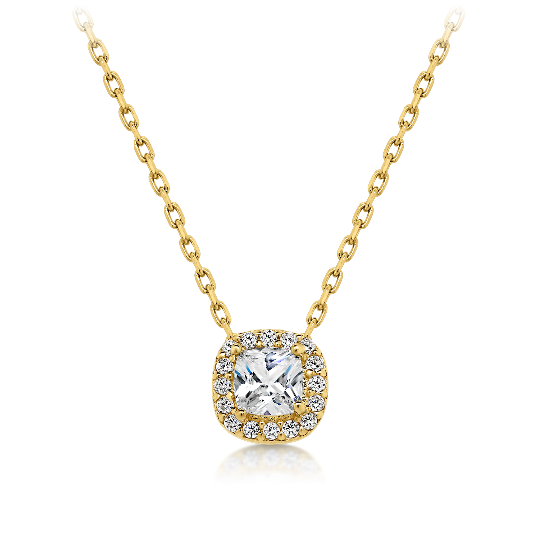 Lanț din aur galben de 14K și pandantiv cu pietre Cubic Zirconia.