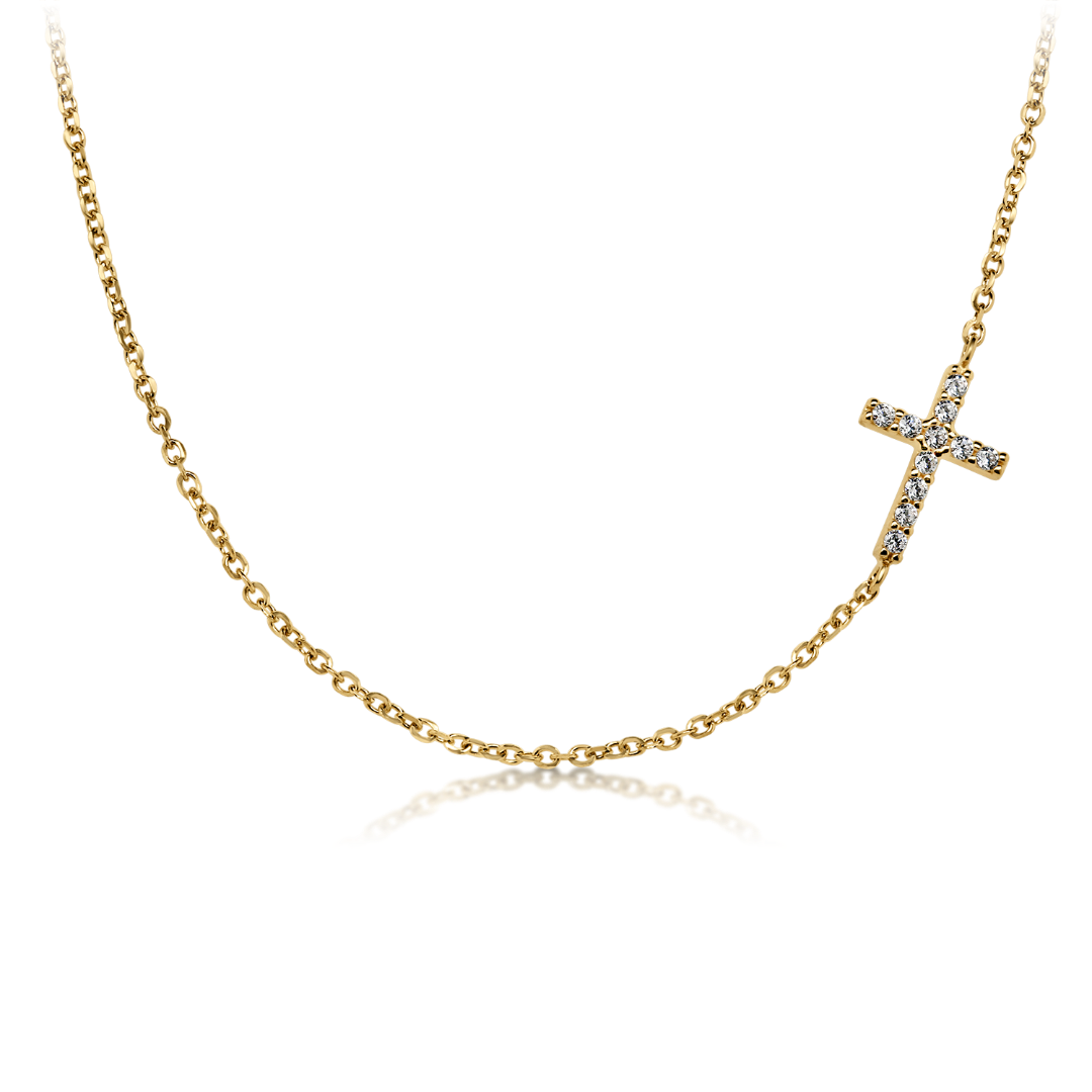 Lanț din aur galben de 14K și pandantiv cruce cu pietre zirconia.
