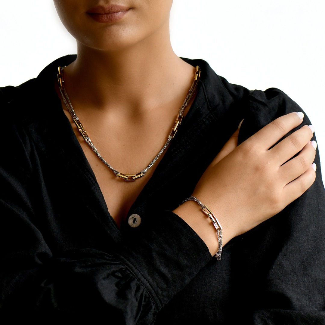 Lanț din aur galben de 14K cu elemente din aur alb.