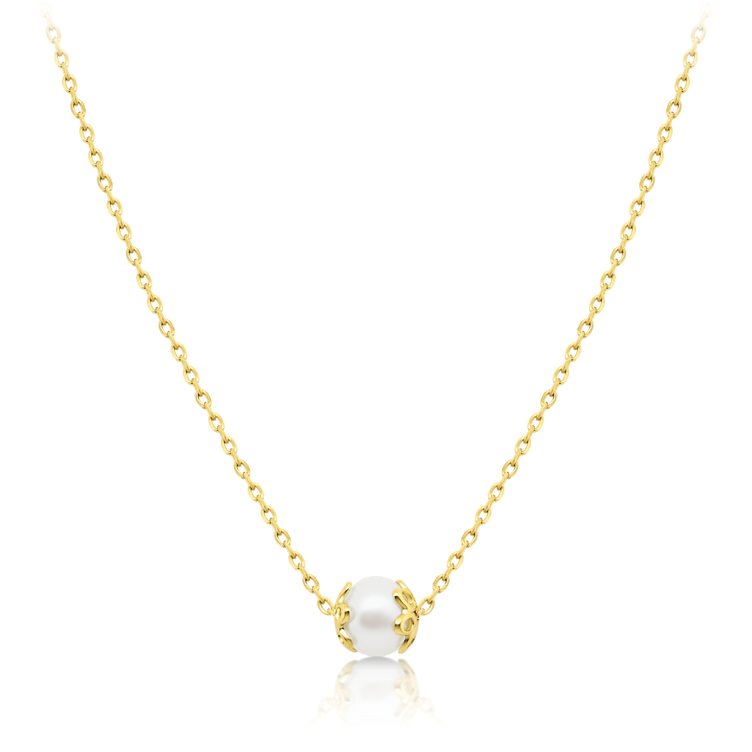 Lanț din aur galben de 14K și pandantiv cu Perlă