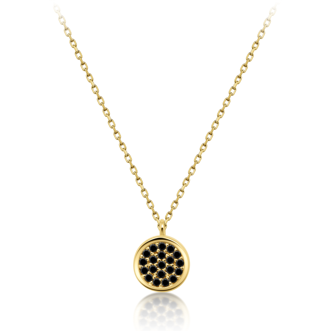 Lanț din aur galben de 14K și pandantiv cu pietre Cubic Zirconia negre.
