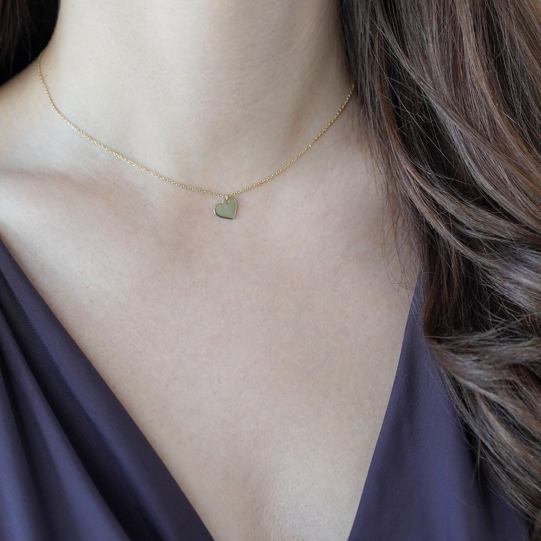 Lanț din aur galben de 14K cu pandantiv inimă.