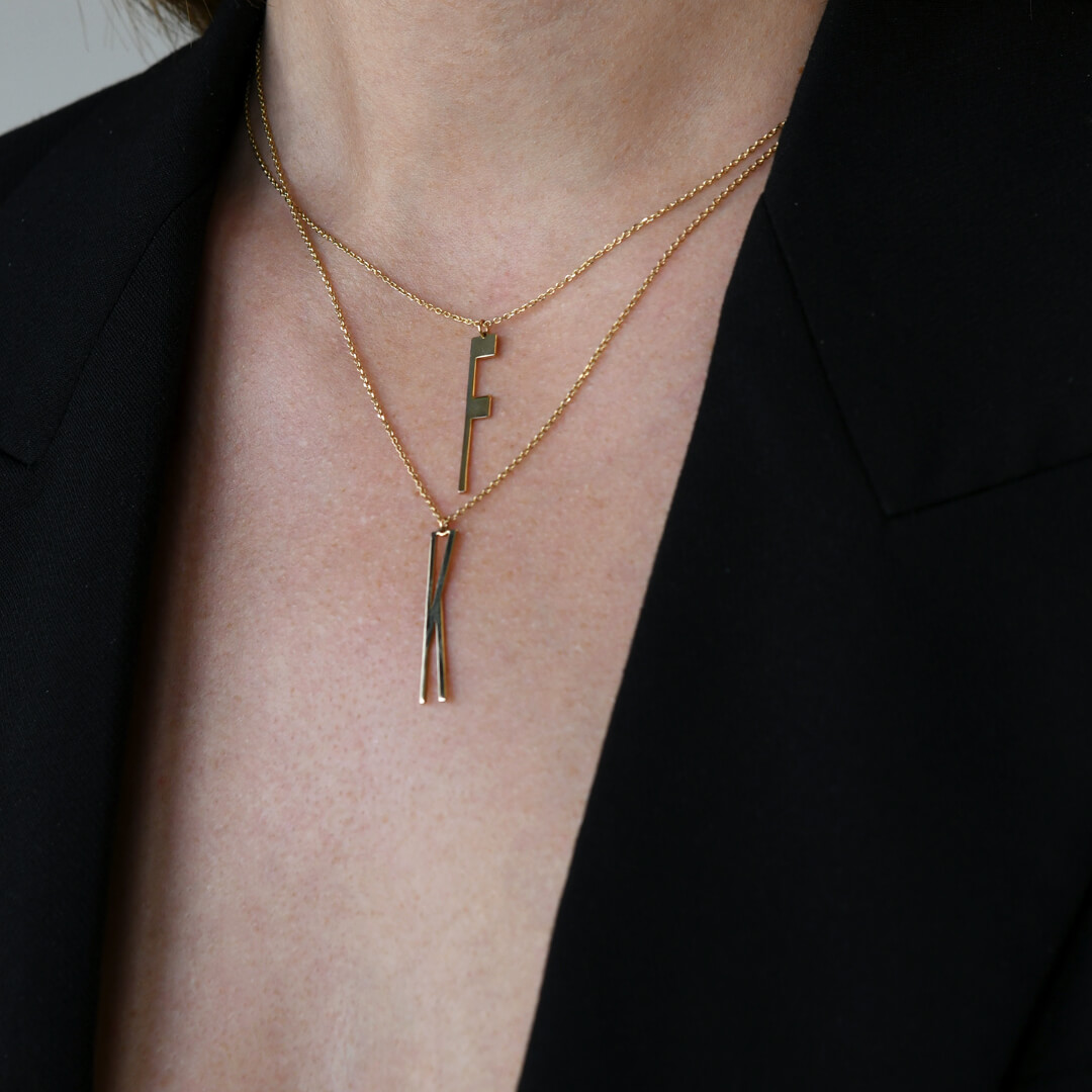 Lanț din aur galben de 14K cu pandantiv litera F