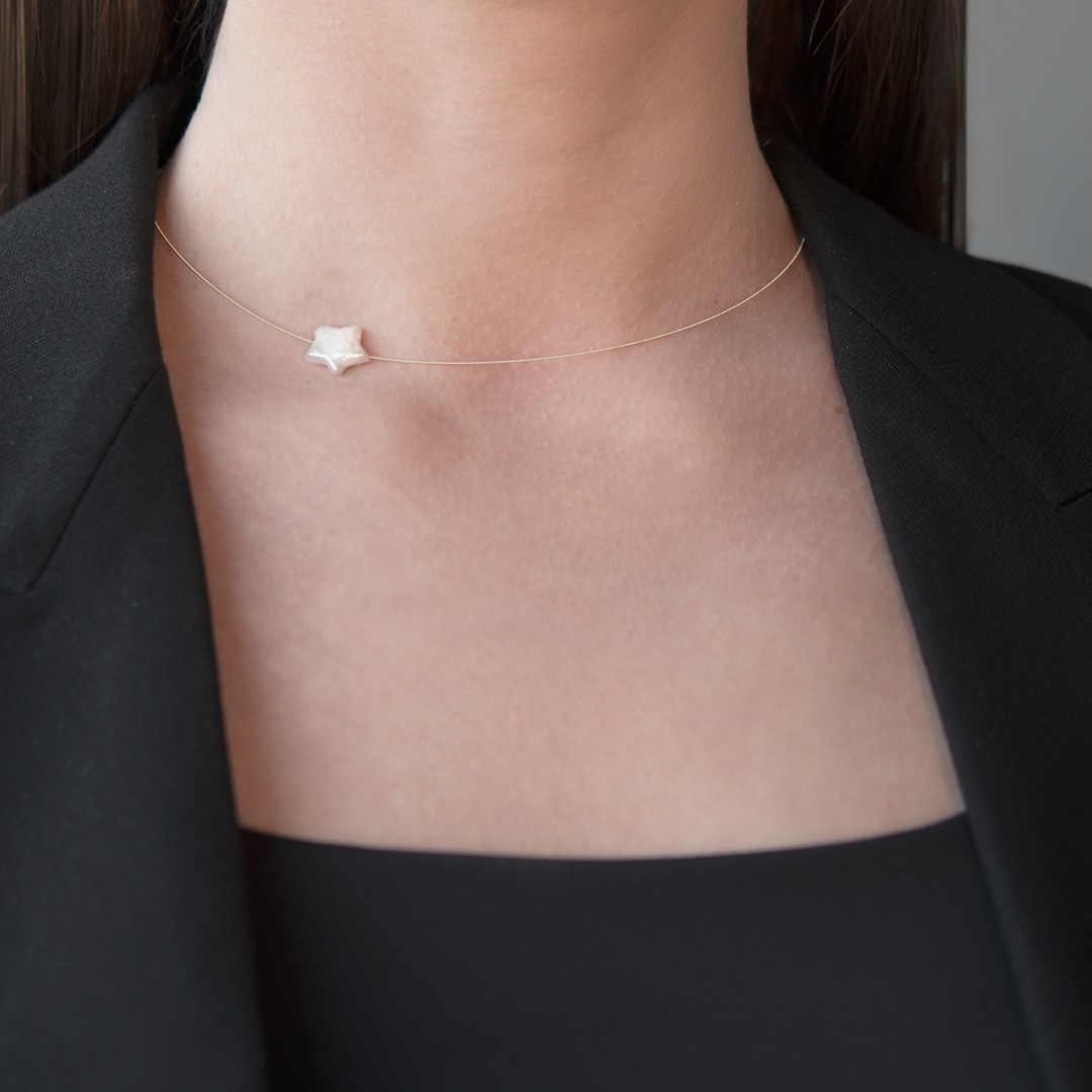 Lanț din aur galben de 14K și pandantiv cu perlă