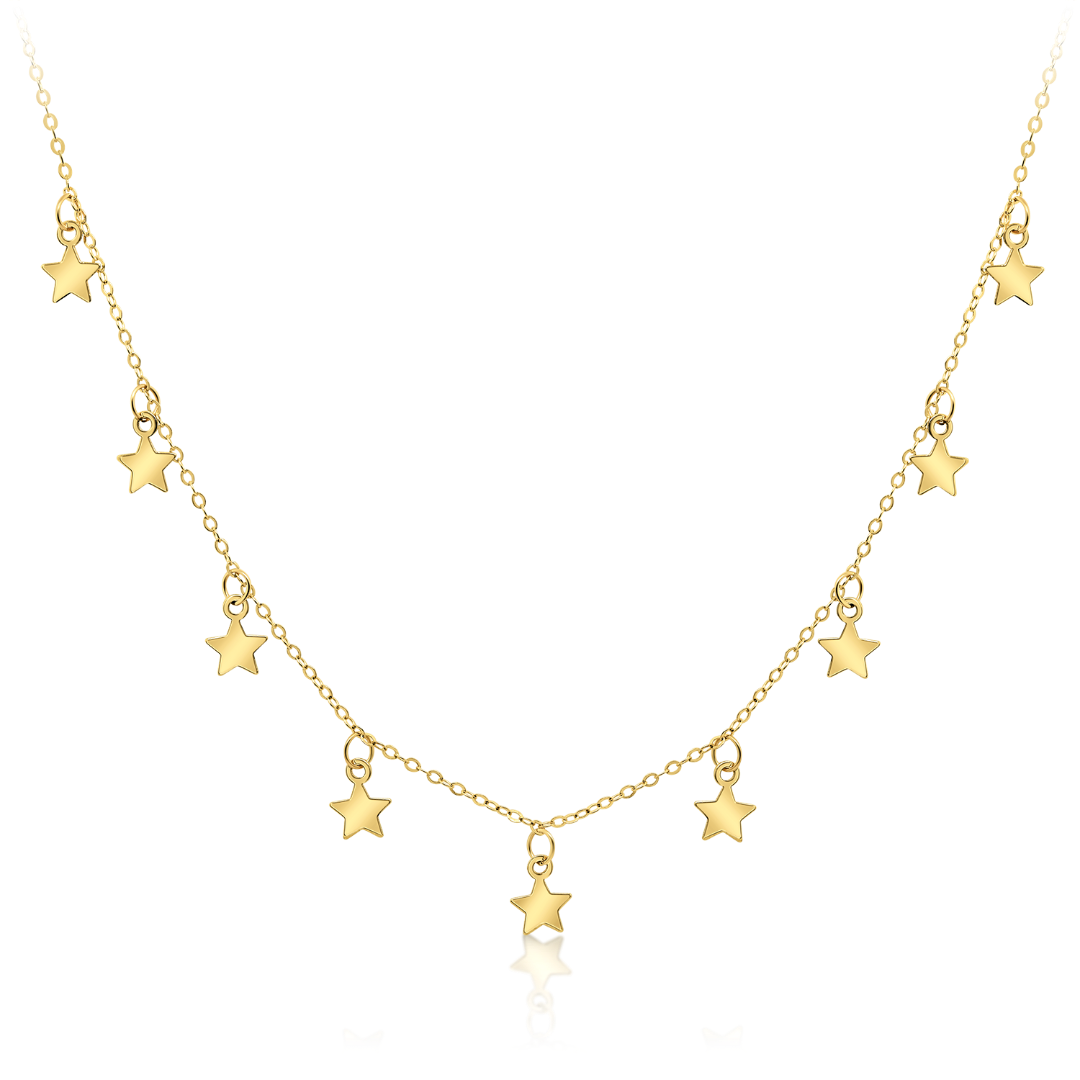 Lanț din aur galben de 14K cu pandantive în formă de stea.