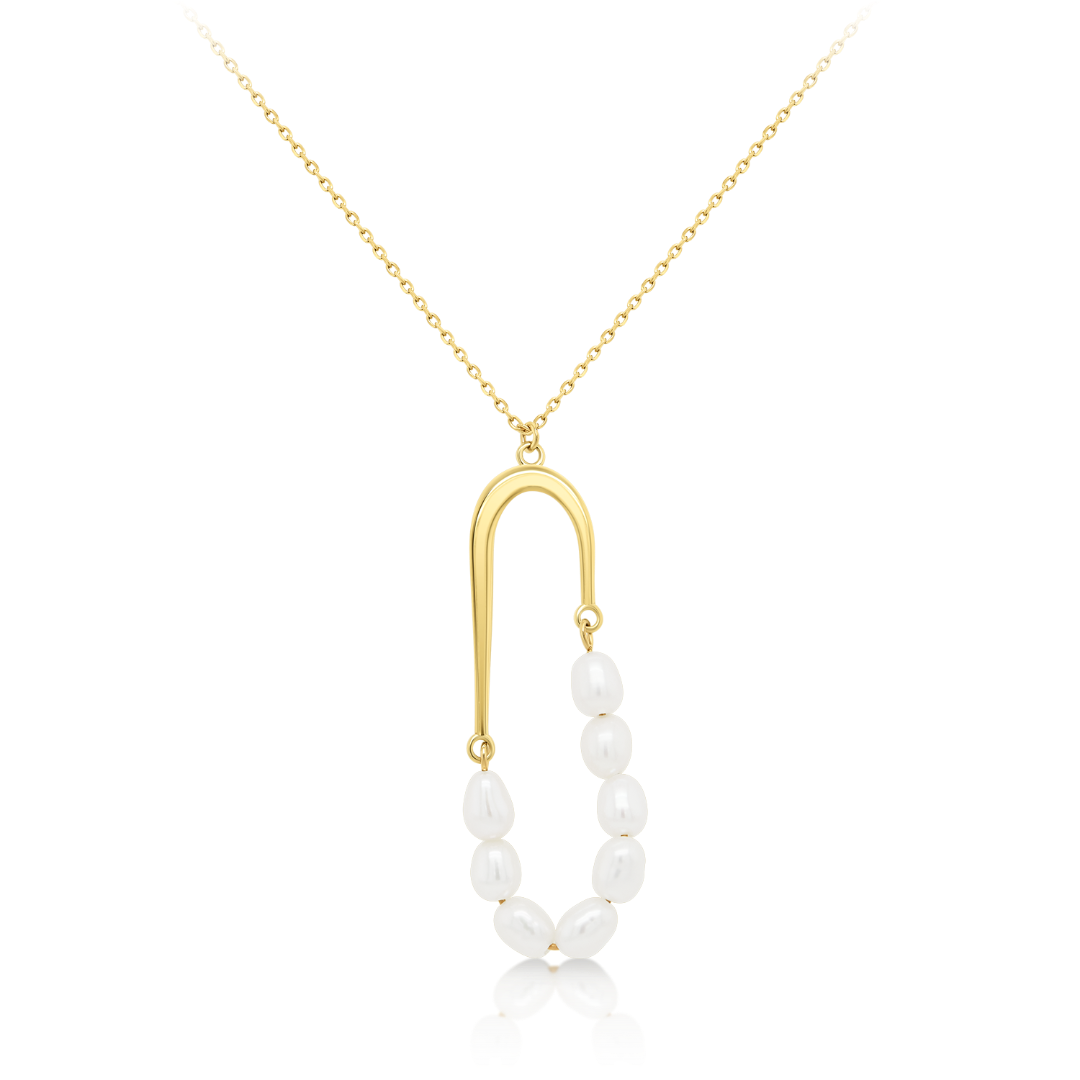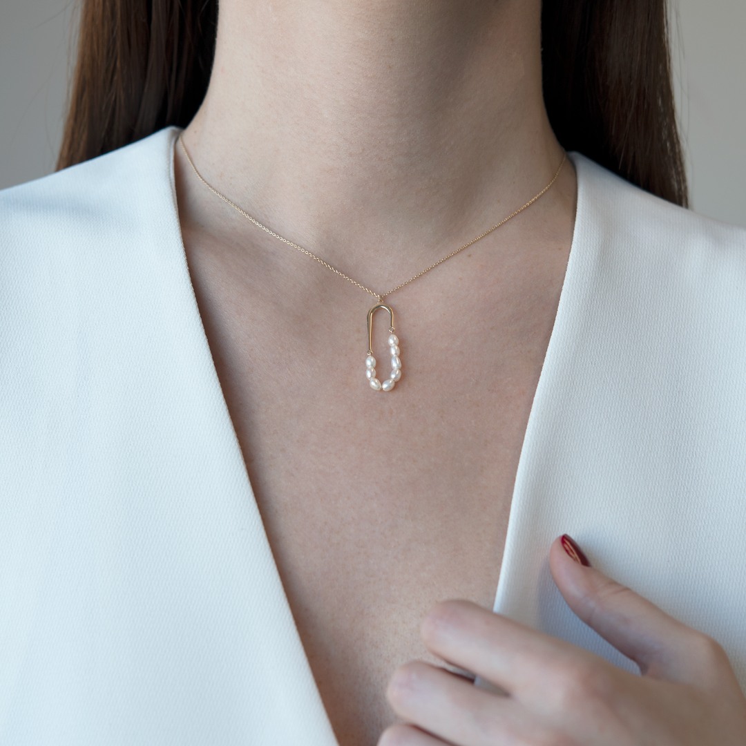 Lanț din aur galben de 14K și pandantiv cu Perle
