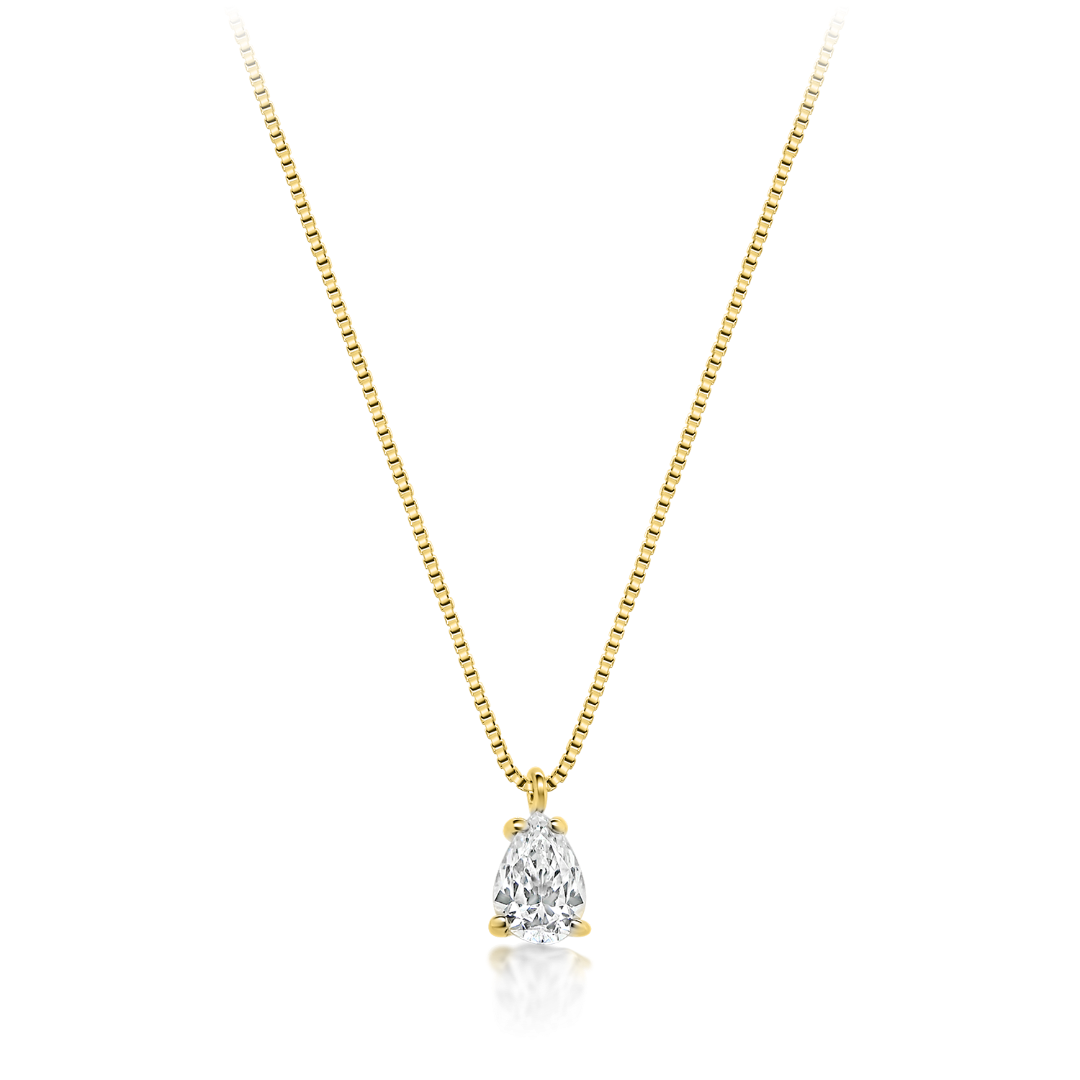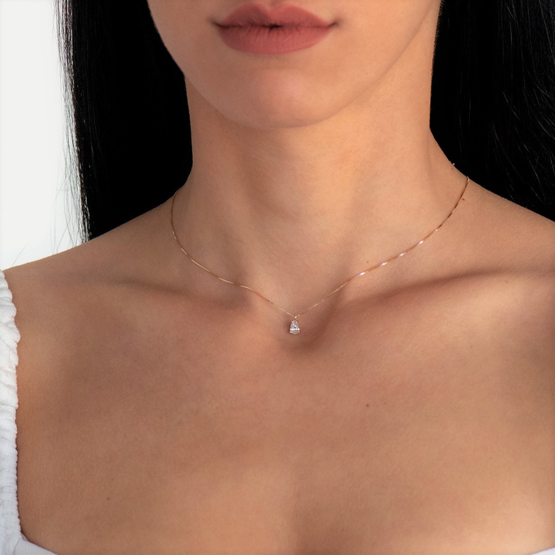 Lanț din aur galben de 14K și pandantiv cu piatră Cubic Zirconia.