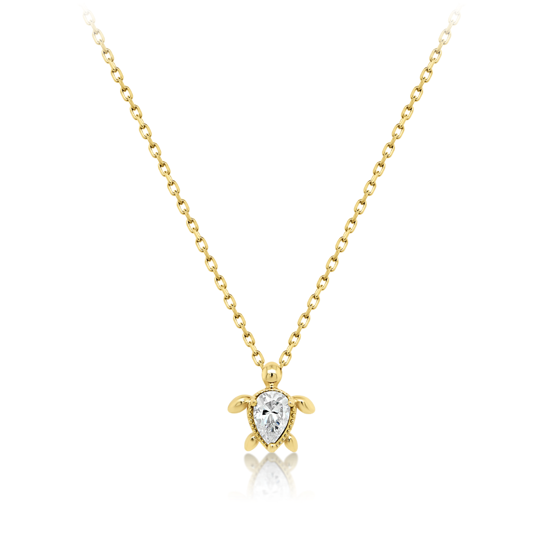 Lanț din aur galben de 14K și pandantiv broască țestoasă cu piatră cubic zirconia.