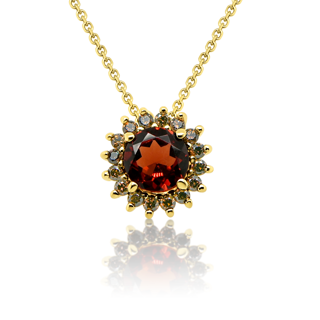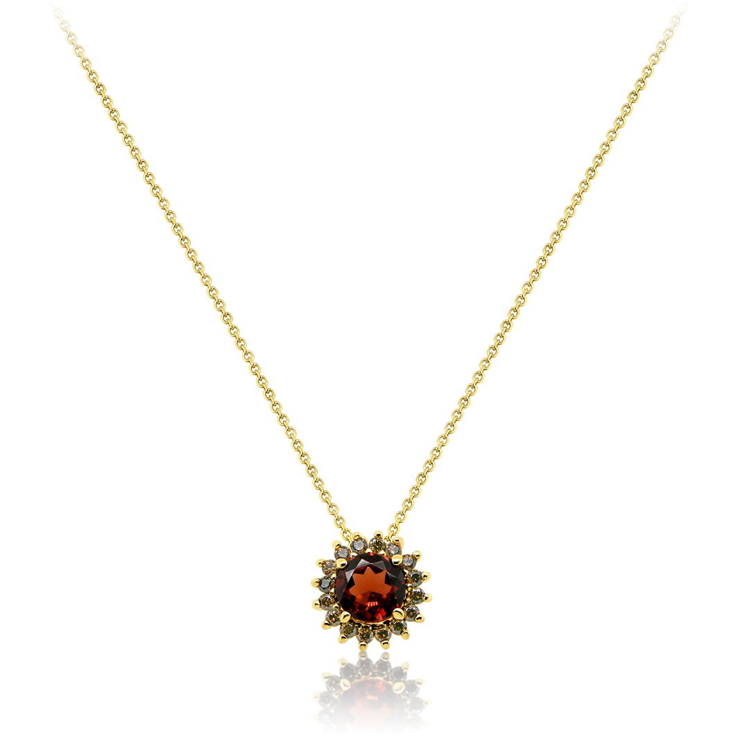 Lanț din aur galben de 14K și pandantiv cu Granat