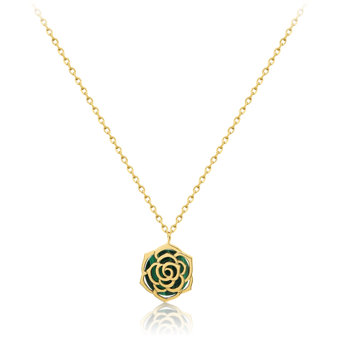 Lanț din aur galben de 14K și pandantiv cu Malachit