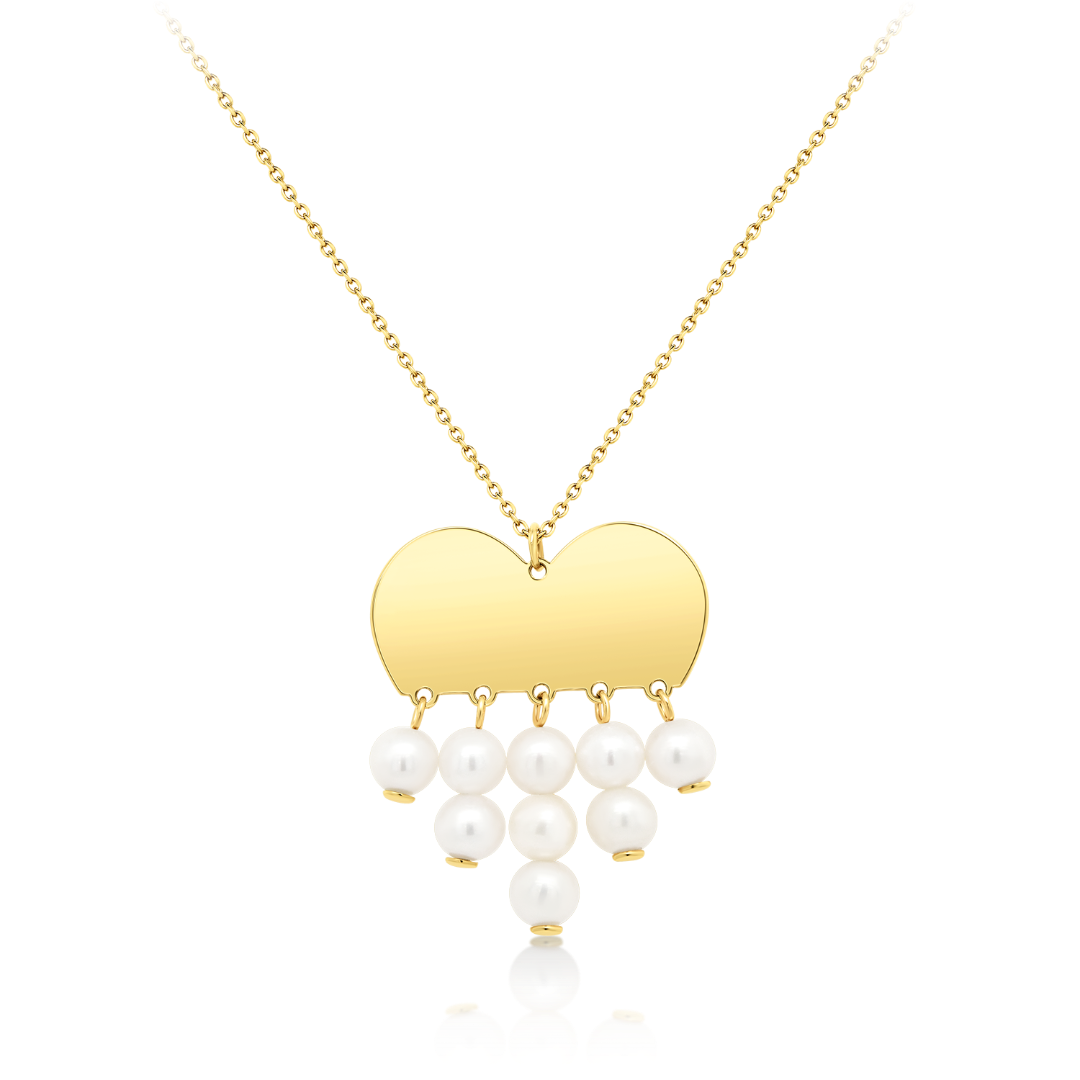 Lanț din aur galben de 14K și pandantiv inimă cu Perle de cultură.
