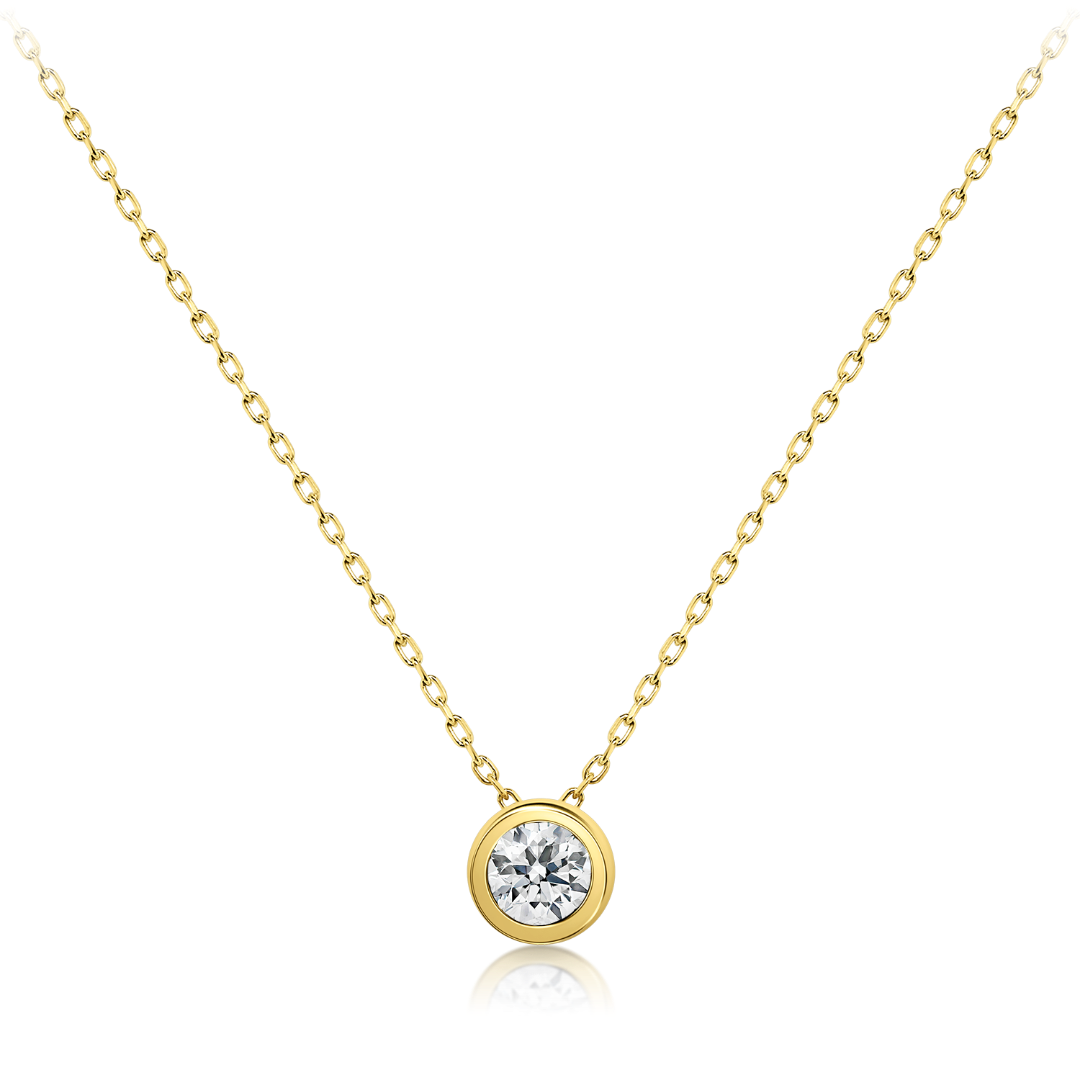 Lanț din aur galben de 14K și pandantiv cu piatră Cubic Zirconia albă.