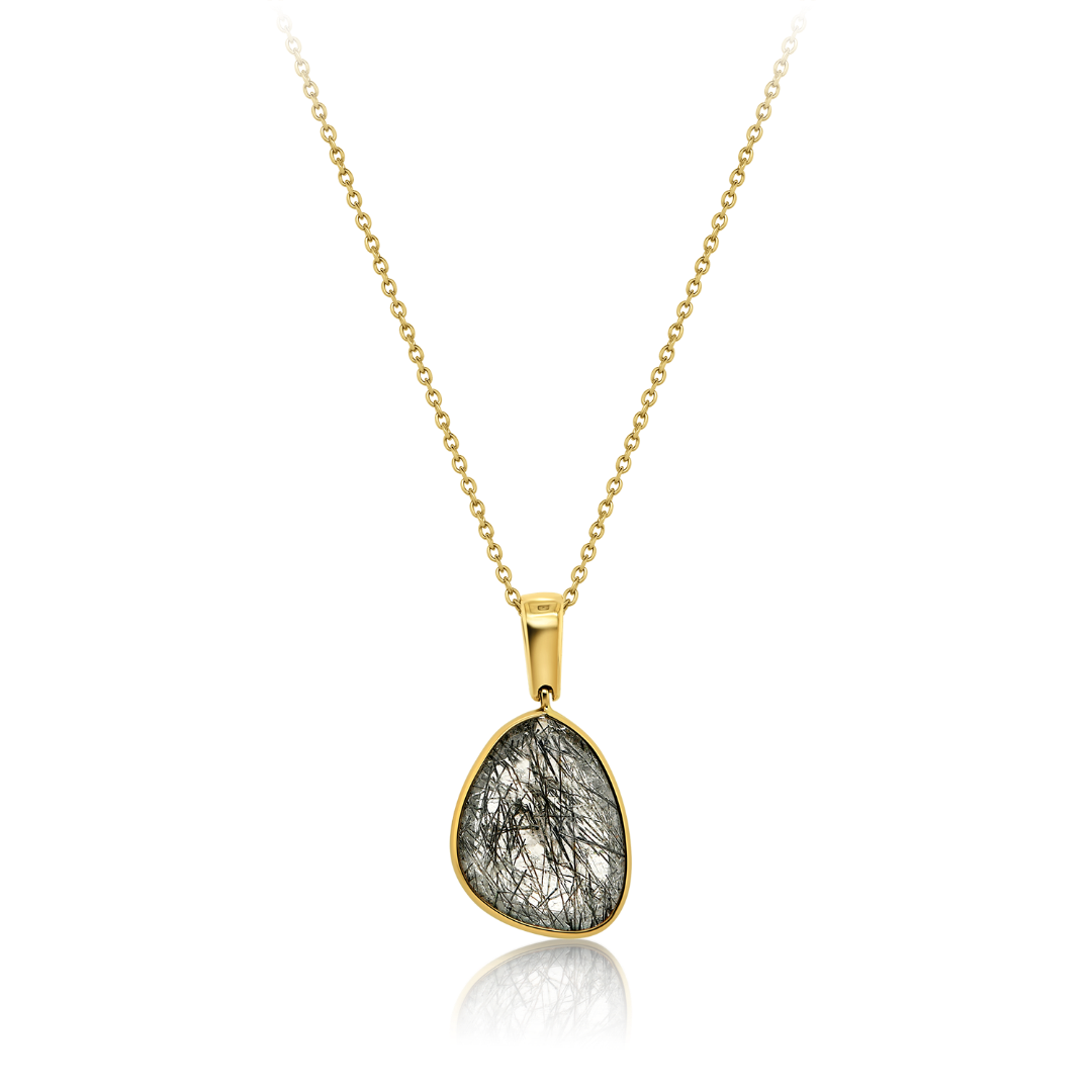 Lanț din aur galben de 14K și pandantiv cu Quartz rutilat