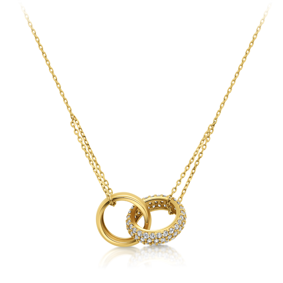 Lanț din aur galben de 14K și pandantiv cu pietre Cubic Zirconia albe.