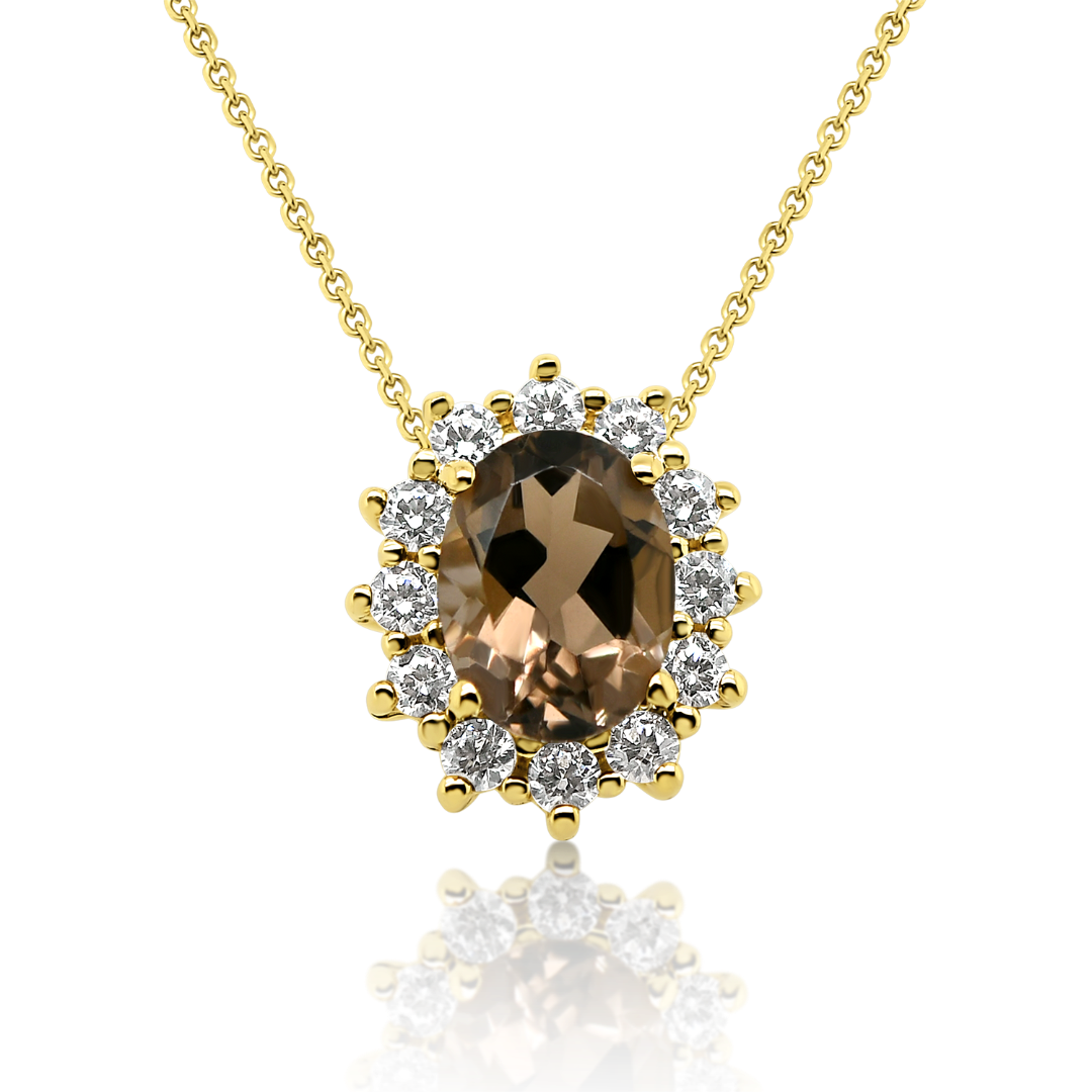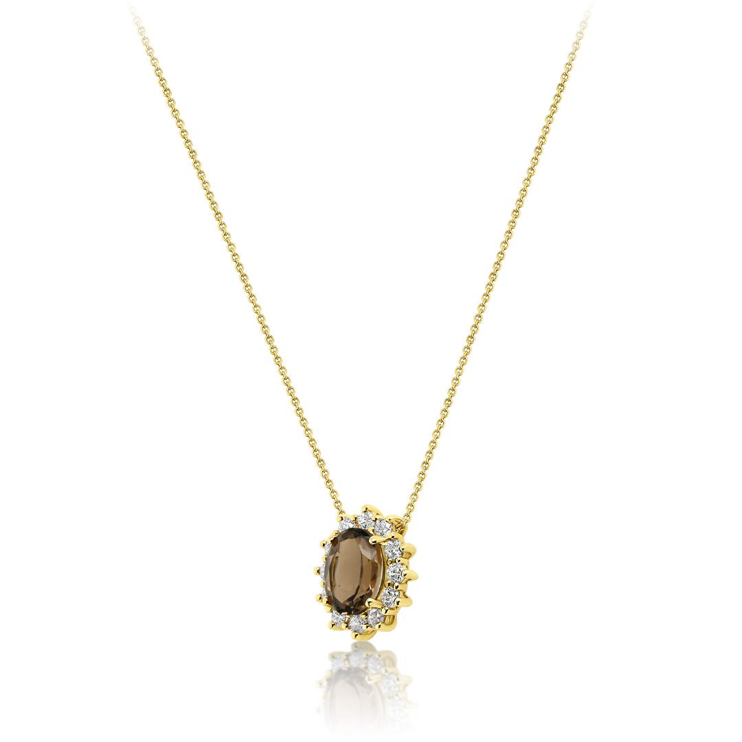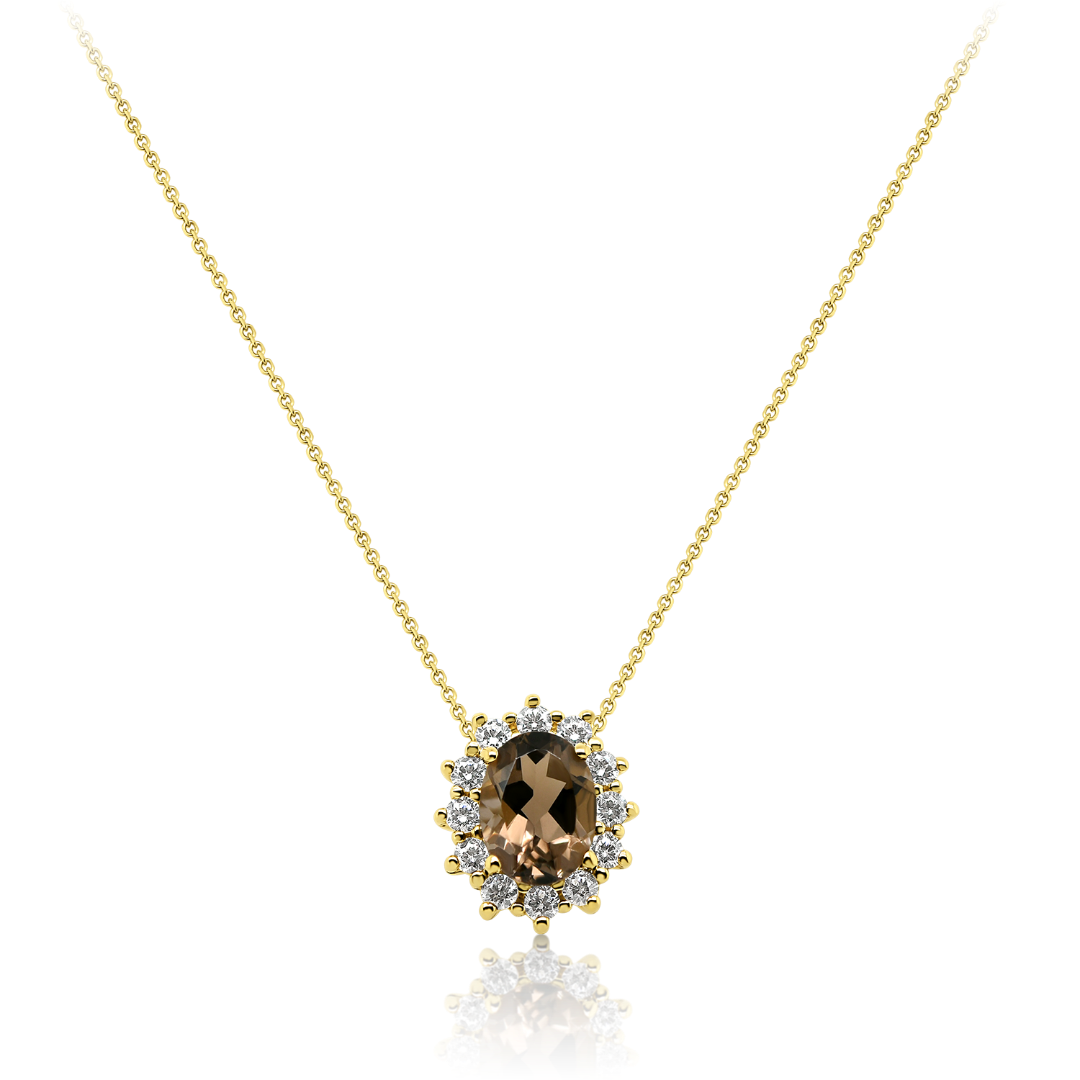 Lanț din aur galben de 14K și pandantiv cu Smoky Quartz