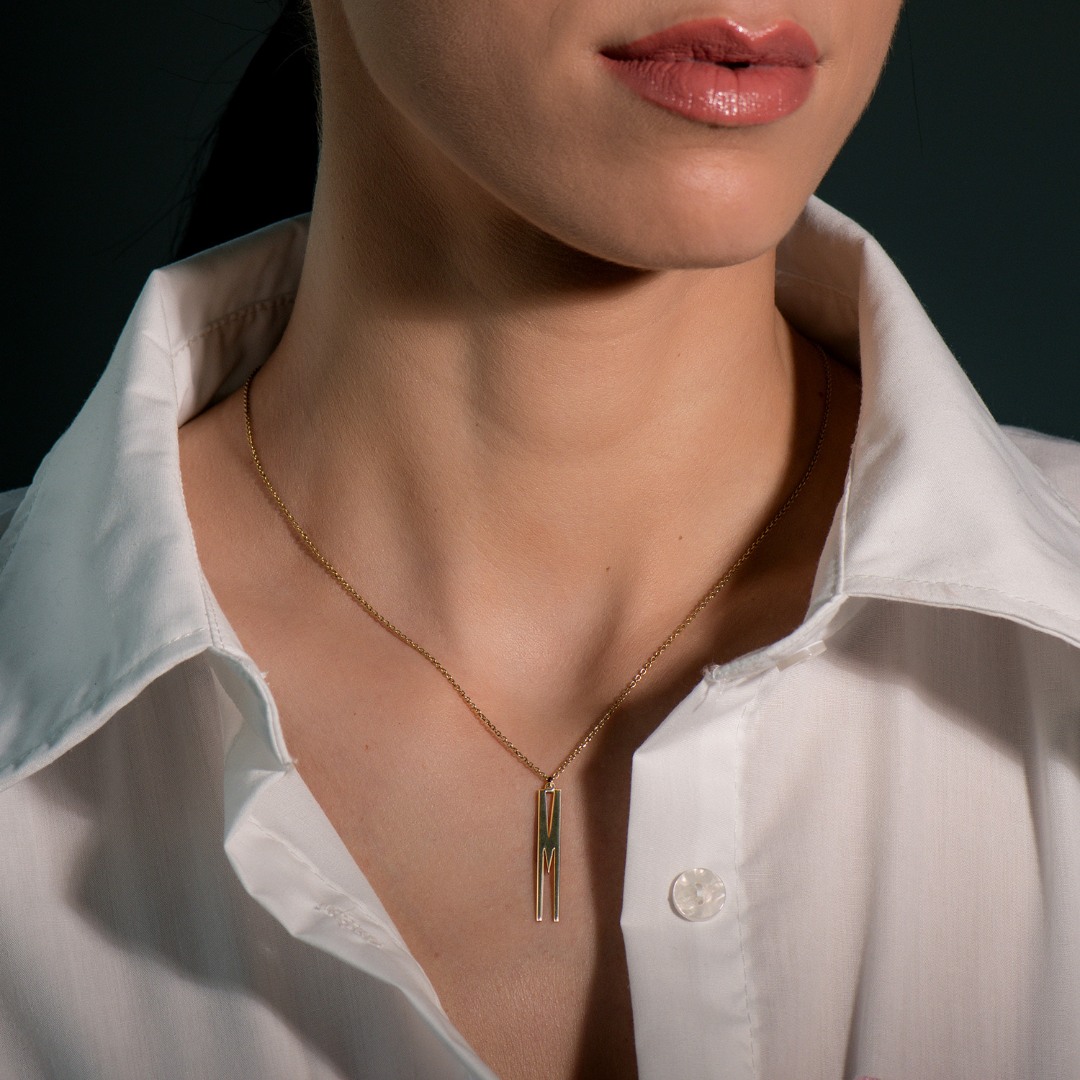Lanț din aur galben de 14K și pandantiv litera M.
