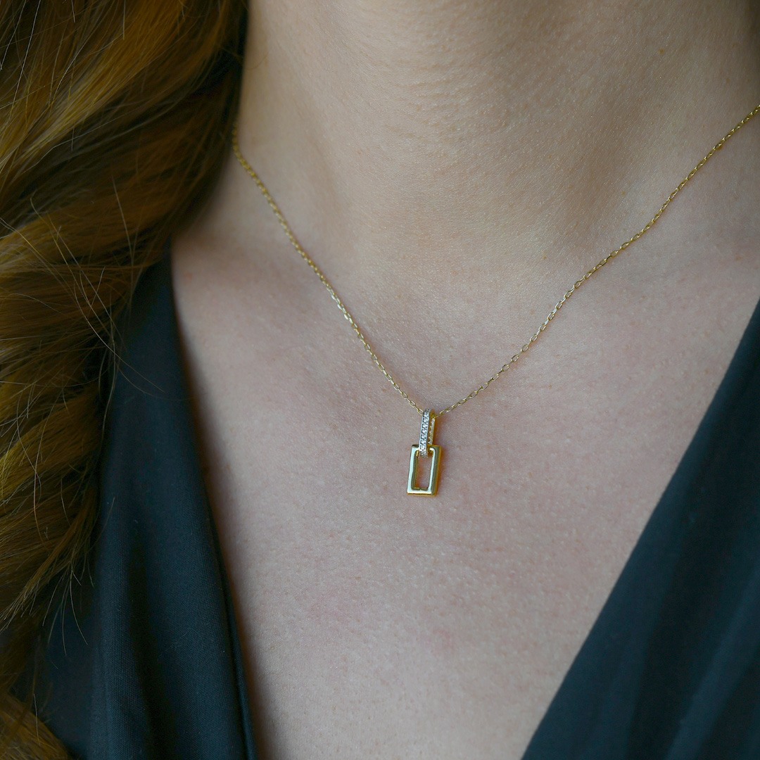 Lanț din aur galben de 18K și pandantiv cu pietre cubic zirconia.
