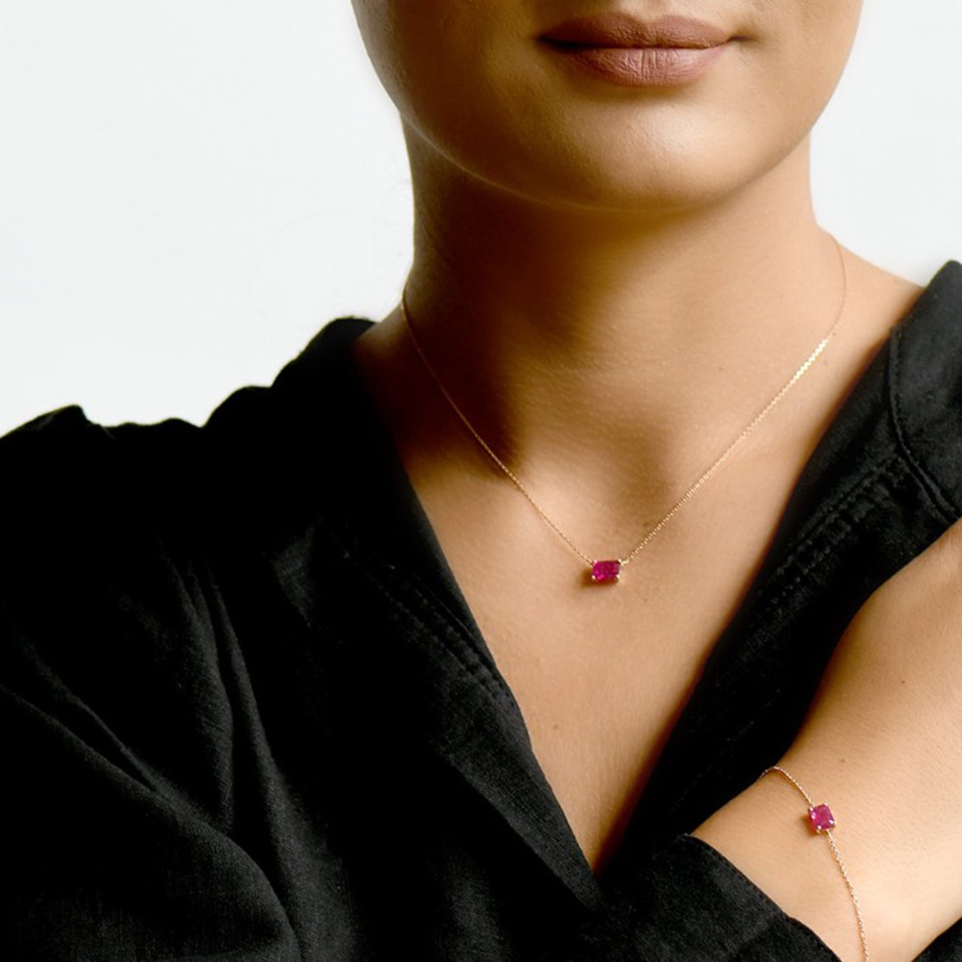 Lanț din aur galben de 14K și pandantiv cu Rubin natural