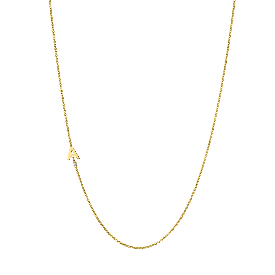 Lanț din aur galben de 18K și pandantiv în forma literei A cu Diamant natural.