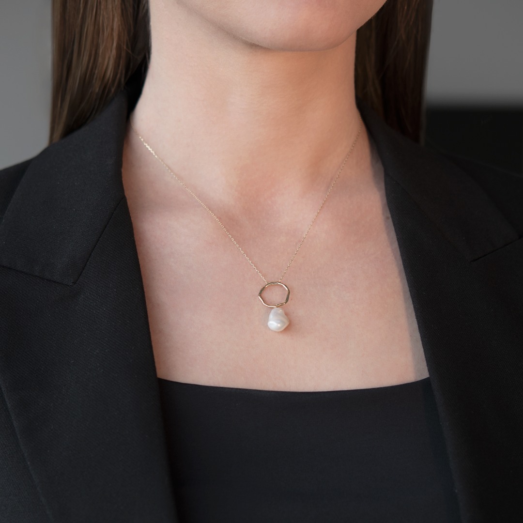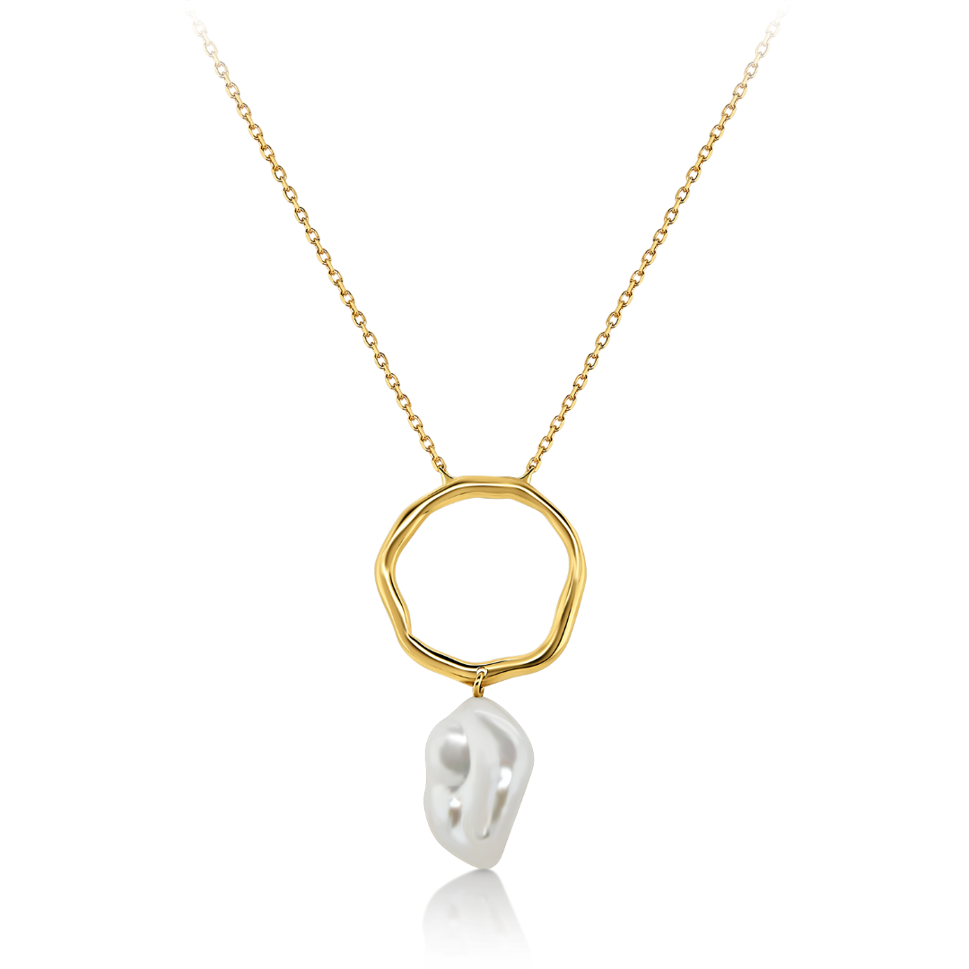 Lanț din aur galben de 14K și pandantiv cu Perlă albă de apă dulce.