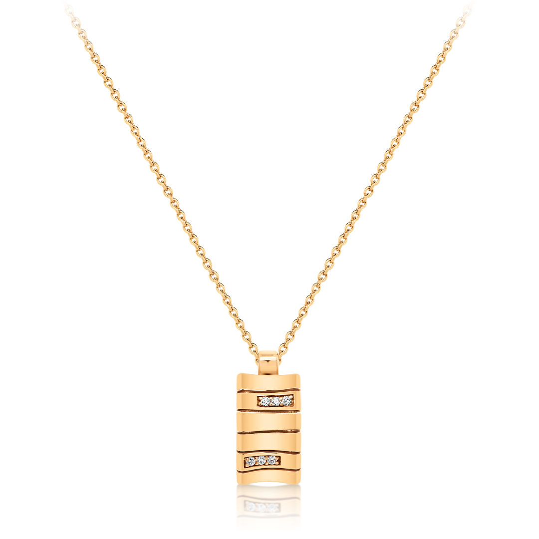 Lanț din aur roz de 14K și pandantiv cu pietre Cubic Zirconia.