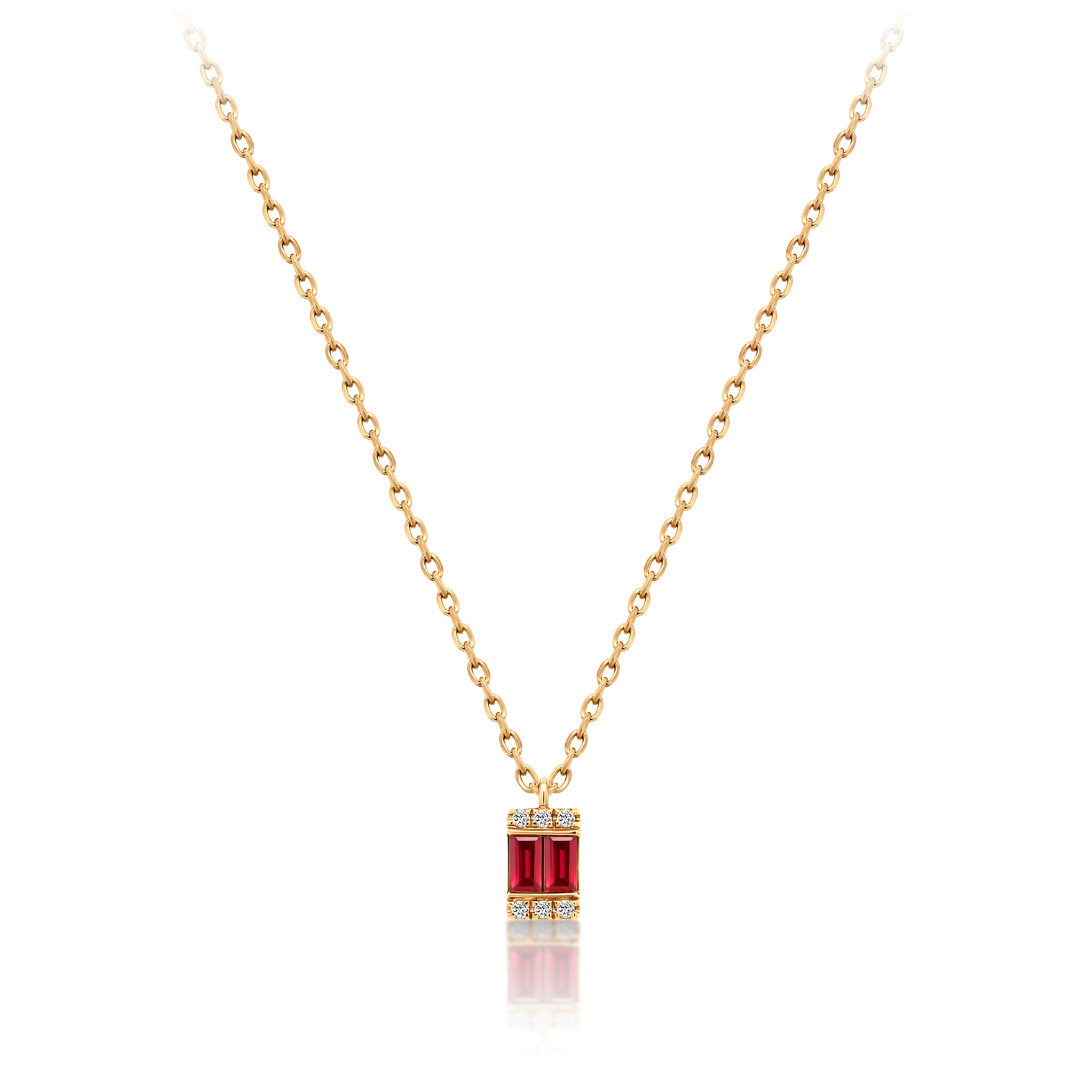 Lanț din aur roz de 18K și pandantiv cu Diamante și Rubine
