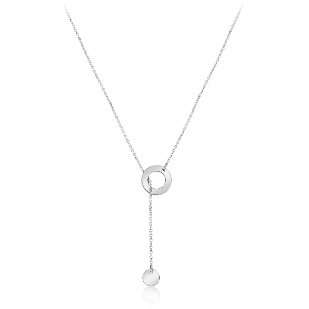 Lanț reglabil din aur alb de 14K cu pandantive rotunde.