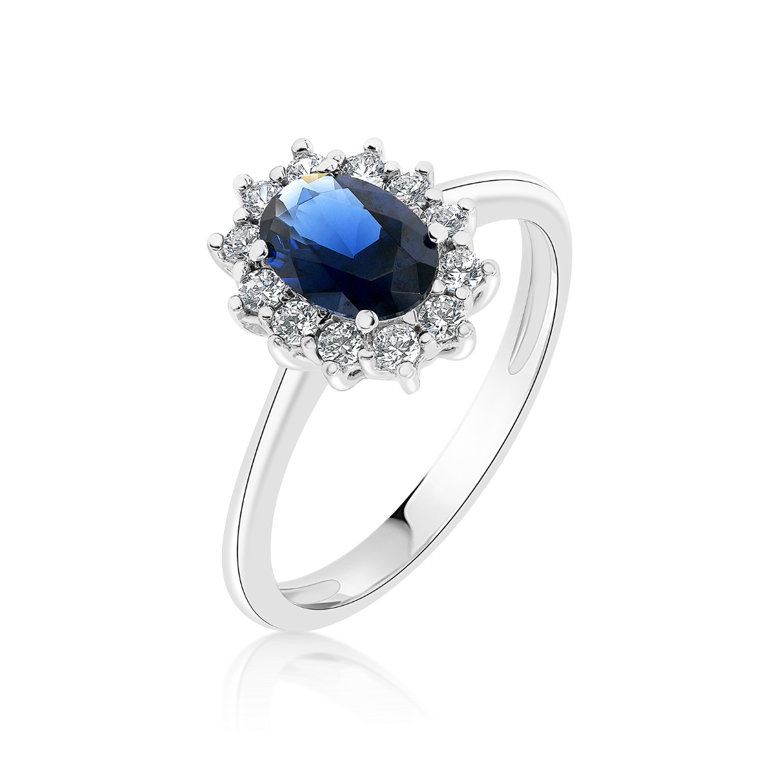 Inel din aur alb de 14K cu pietre Cubic Zirconia.