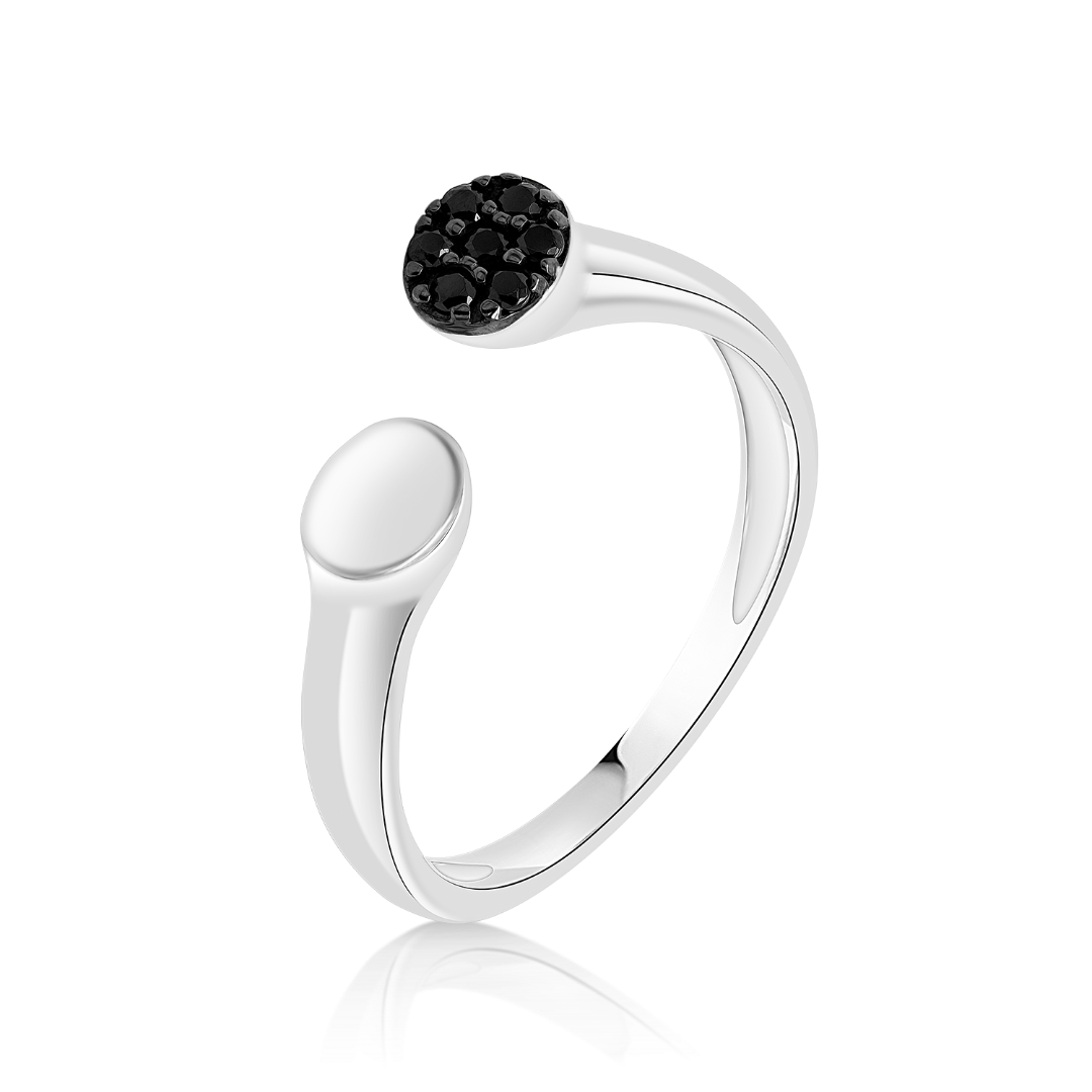 Inel din aur alb de 14K cu pietre cubic zirconia negre.