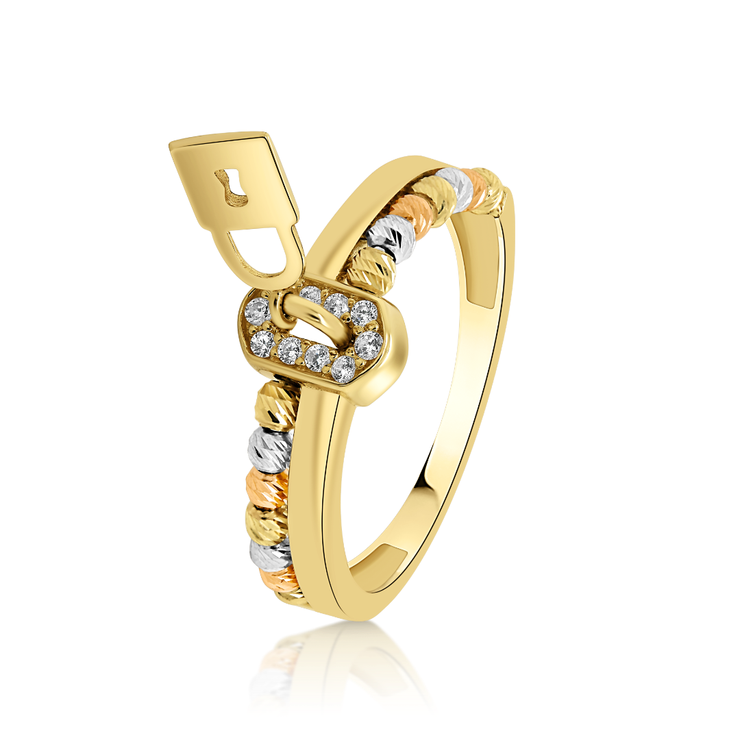 Inel din aur galben de 14K, cu biluțe fațetate și pietre cubic zirconia.