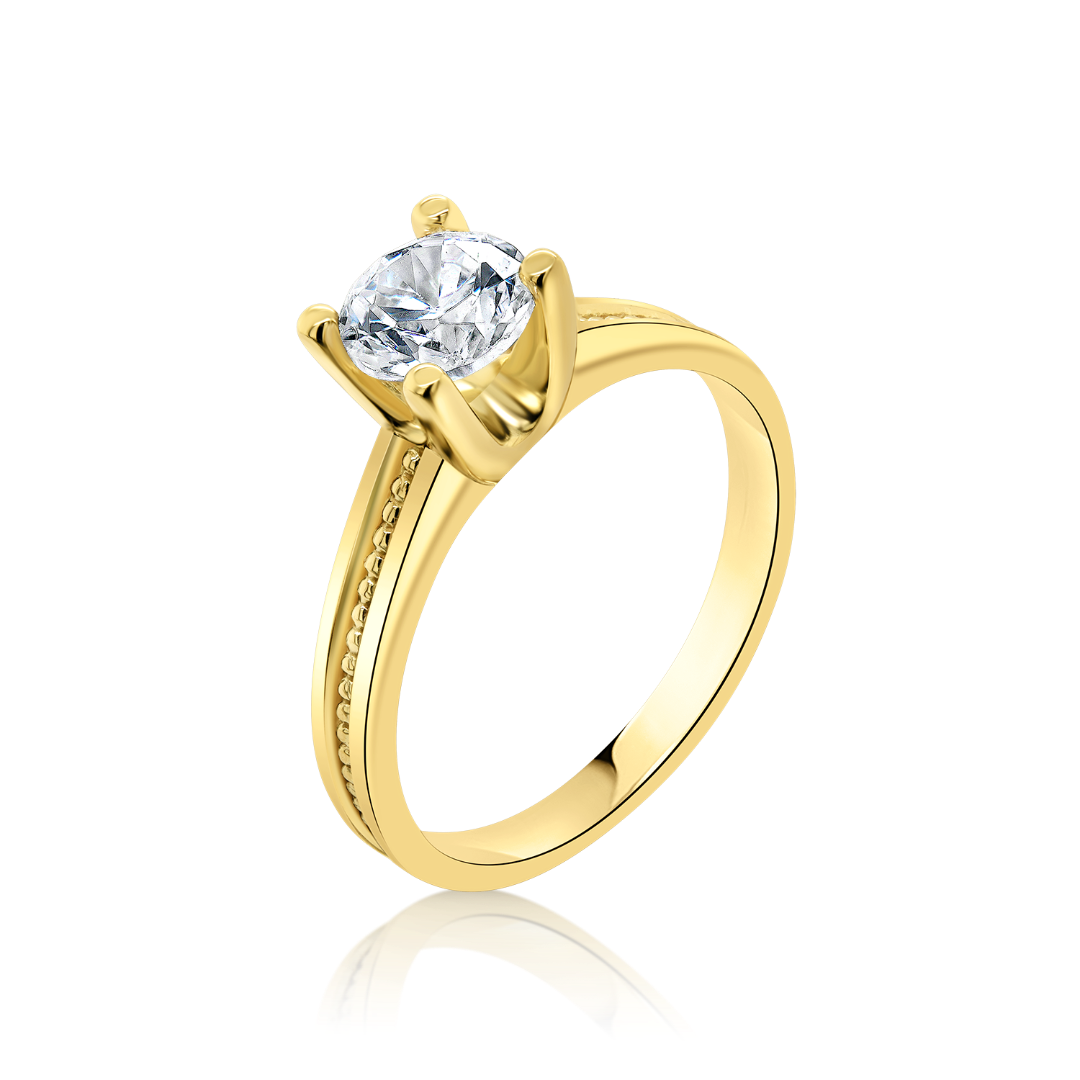 Inel de logodnă din aur galben de 14K cu piatră cubic zirconia.