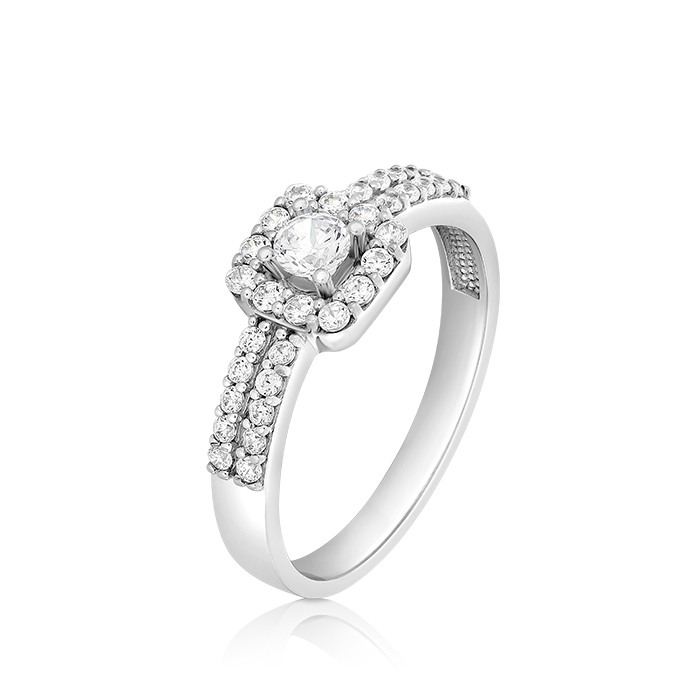 Inel din aur alb de 14K, încrustat cu pietre Cubic Zirconia albe.