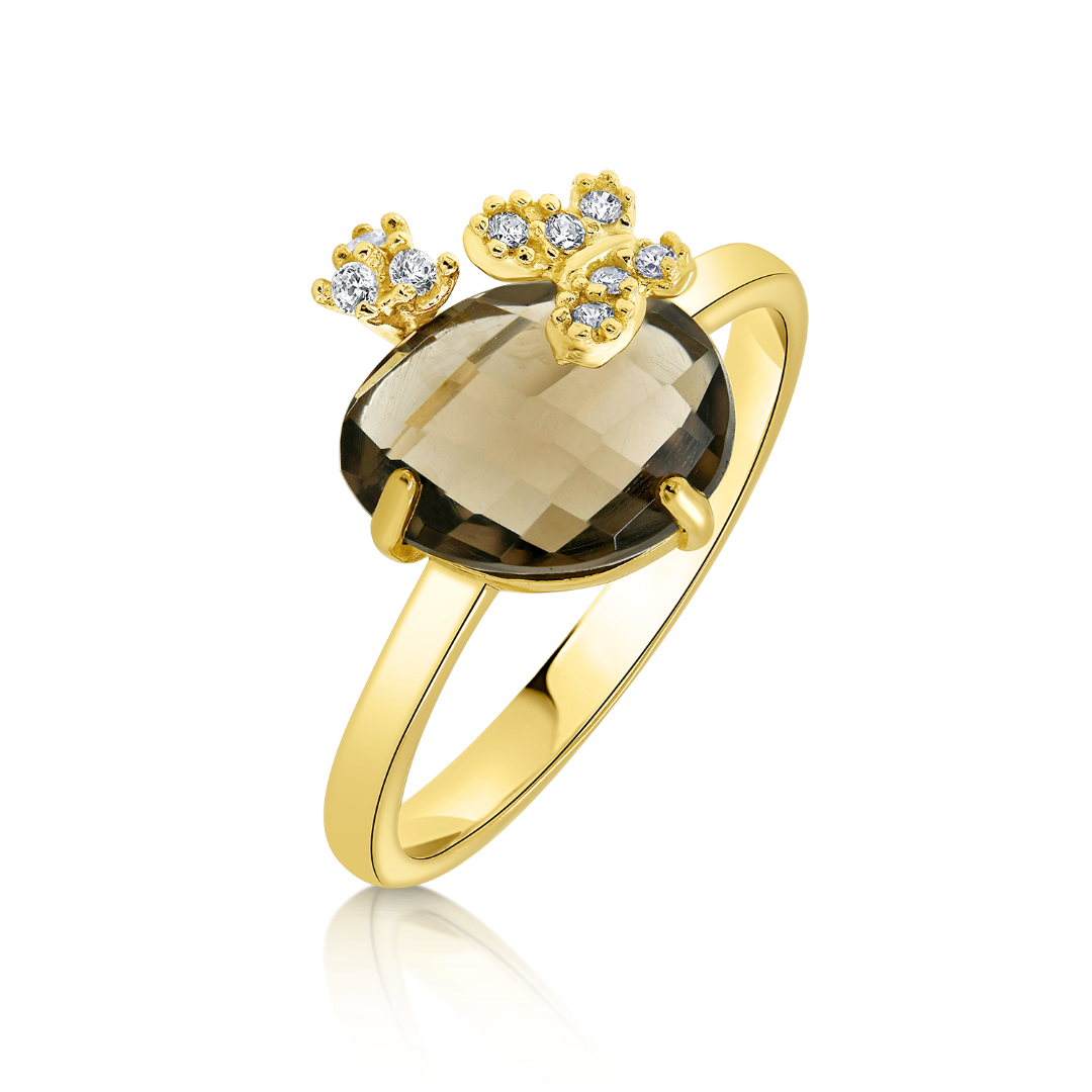 Inel din aur galben de 14K cu Smoky Quartz și pietre cubic zirconia.