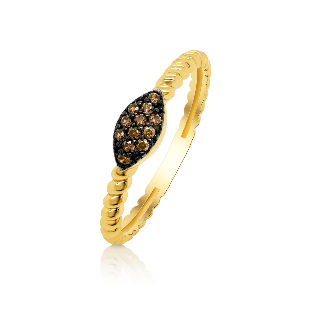 Inel din aur galben 14K cu pietre Cubic Zirconia maro și rodiu negru.