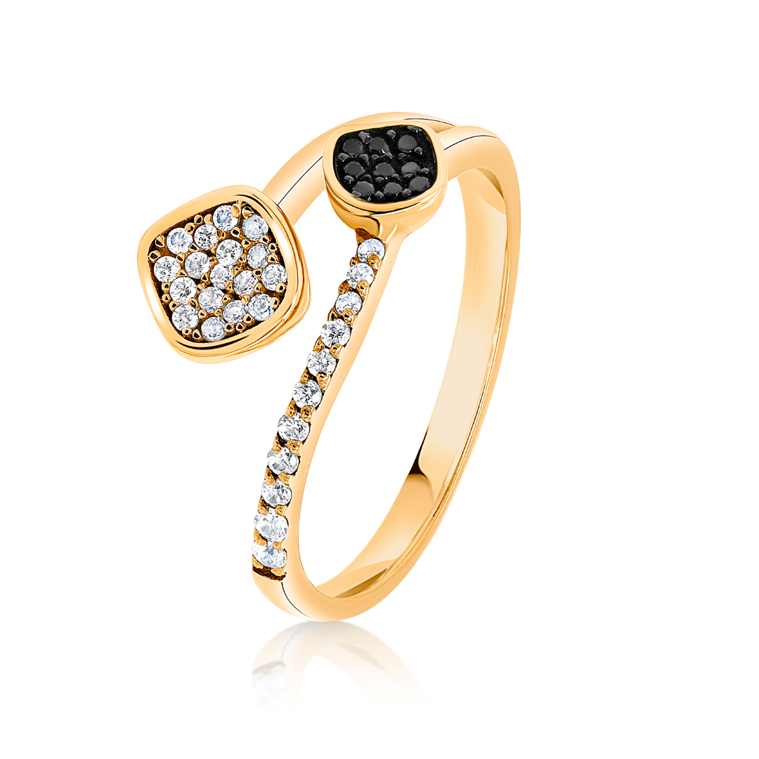 Inel aur roz de 14K cu pietre Cubic Zirconia albe și negre.
