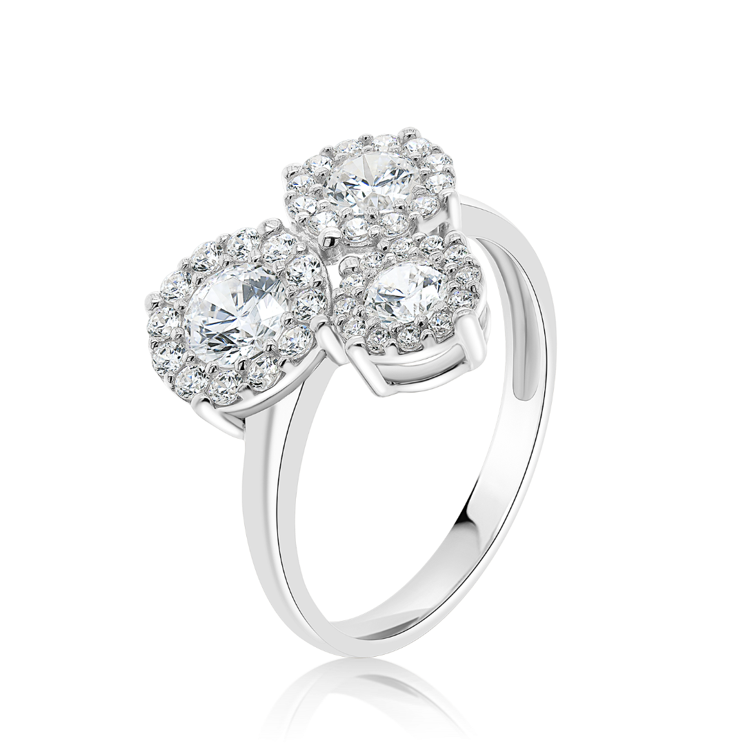 Inel din aur alb de 14K cu pietre cubic zirconia.