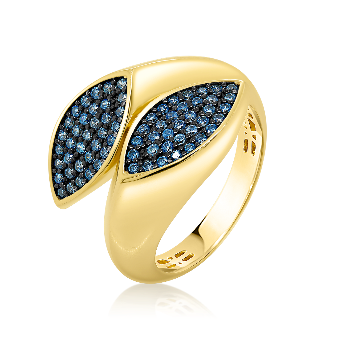 Inel din aur galben de 14K, cu pietre Cubic Zirconia albastre și rodiu negru.