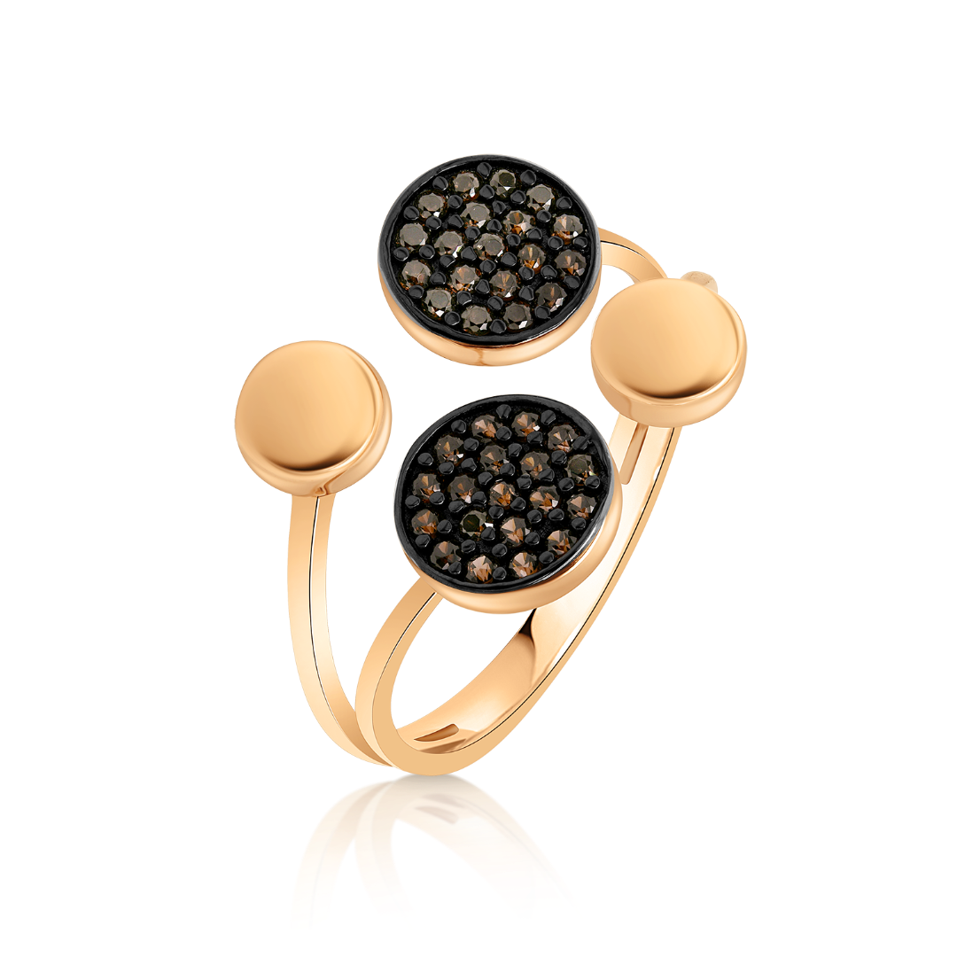 Inel reglabil din aur roz de 14K, cu pietre cubic zirconia și Rodiu negru.