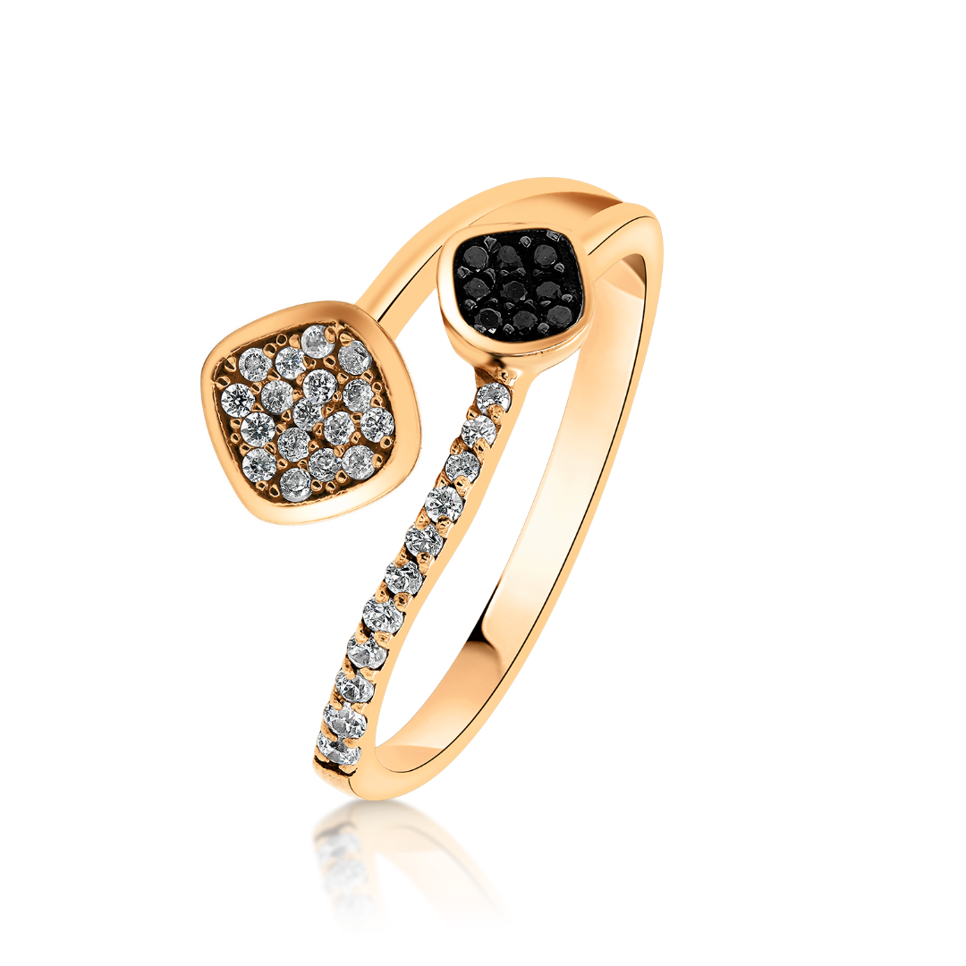 Inel din aur roz 14K cu pietre cubic zirconia.
